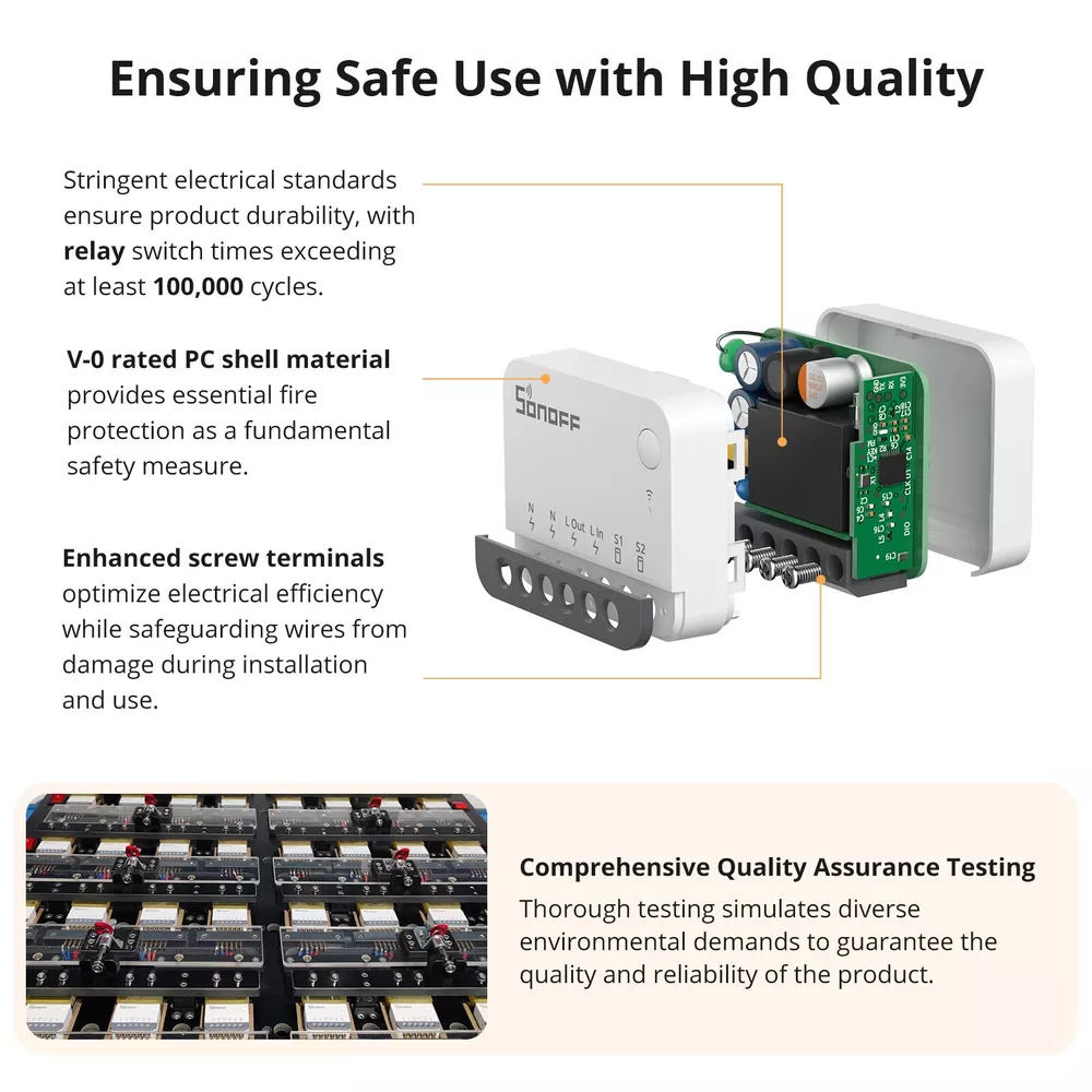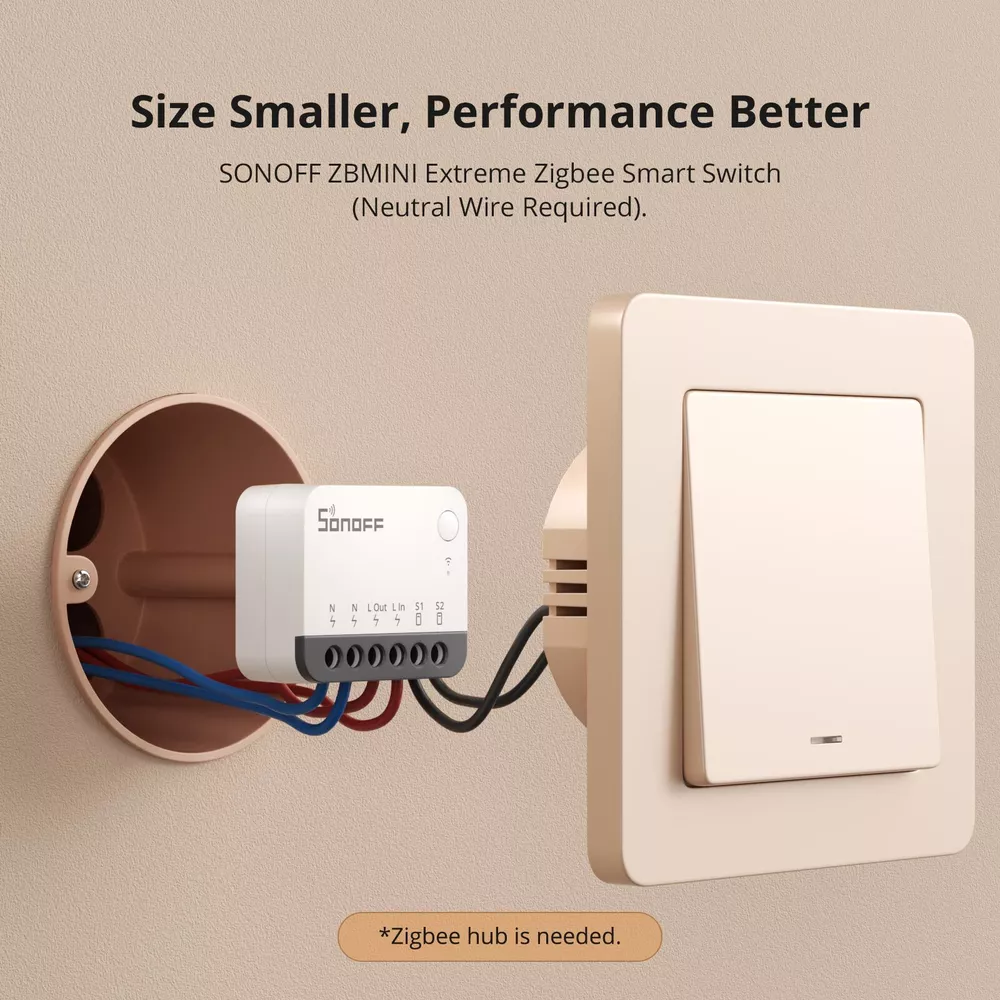 Store Categories Store Categories SONOFF DIY Smart Swicth Smart Wall Switch Smart Lighting Smart Accessories Smart Home Security Smart Plugs Home Appliances Gateway & Sensors NEXTION Basic Series Discovery Series Enhanced Series Intelligent Series Nextion Accessories Other SONOFF ZBMINIR2 Extreme Smart Zigbee Smart Switch Module Neutral Wire Required- Product Description Ov er v iew SONOFF ZBMINIR2 is an extremely compact Zigbee 3.0 smart switch, capable of being installed in EU-type/86 type/120 type mounting box and supporting a maximum load of 10A, compatible with various external switch types, upgrading your traditional external switch into a smart one, seamlessly integrating smart technology into your home for enhanced convenience and control. SONOFF ZBMINIR2 needs to be used with a Zigbee hub, such as SONOFF NSPanel Pro, SONOFF iHost, SONOFF ZB Bridge/ZB Bridge-P/ZB Bridge-U, Philips Hue, SmartThings hub v3, Echo Plus 2nd… A reliable connection is crucial for your Zigbee network.ZBMINIR2, as a Zigbee router device with Turbo Mode', supports extending up to 64 Zigbee end devices, boosts signal strength, and expands coverage for optimal performance. Annoyed by your smart bulb going offline when the external switch is off? Try 'Detach Mode'! Keep your smart bulb connected and worry-free, even with the external switch off. Worried about damage from sudden power restoration after an outage? Delay power-on is your solution, preventing harm from high currents when multiple loads turn on simultaneously. Based on the Zigbee 3.0 standard protocol, ZBMINIR2 seamlessly integrates with third-party open-source platforms, such as Home Assistant, Zigbee2MQT( Zigbee Dongle is required, e.g. SONOFF ZBDongle-P/ ZBDongle-E) making it perfect for your home automation needs. N ote : The Zigbee Hub is needed. ZBMINIR2 integrates with Zigbee hubs, such as SONOFF NSPanel Pro, SONOFF iHost, SONOFF ZB Bridge/ZB Bridge-P/ZB Bridge-U, Philips Hue, SmartThings hub v3… Payment Policy Shipping Policy Returns Policy Feedback About US Payment Policy We accept payment via Paypal only. Please settle the payment via PayPal within 3 days upon auction ended. You can left us a message about your special request. Shipping Policy Packages will be sent out with 24-48 hours (except holidays). Packages are only shipped via Paypal Address. We will not bear for duties or taxes. We offer free shipment via Economic method.we also offer express transportation,while you need to pay for the extra postage. If you have not received your items within 30 days,please contact us trough Ebay message,please contact us before you contact ebay. Returns Policy We accept returning with 30-days,please add your ebay ID into the package. You can receive the replacement or money back. Feedback We will appreciate for your positive feedbacks,if you have any questions,please Contact us firstly we will try our best to help you. Emails will be replied with 12 hours,replies will be delayed in holidays. About US Working time:Beijing Time From 9:00am to 6:00pm,from Monday to Friday. (we don’t work on weekends).we will get back to soon on working time. Copyright © 2023 Dianxiaomi