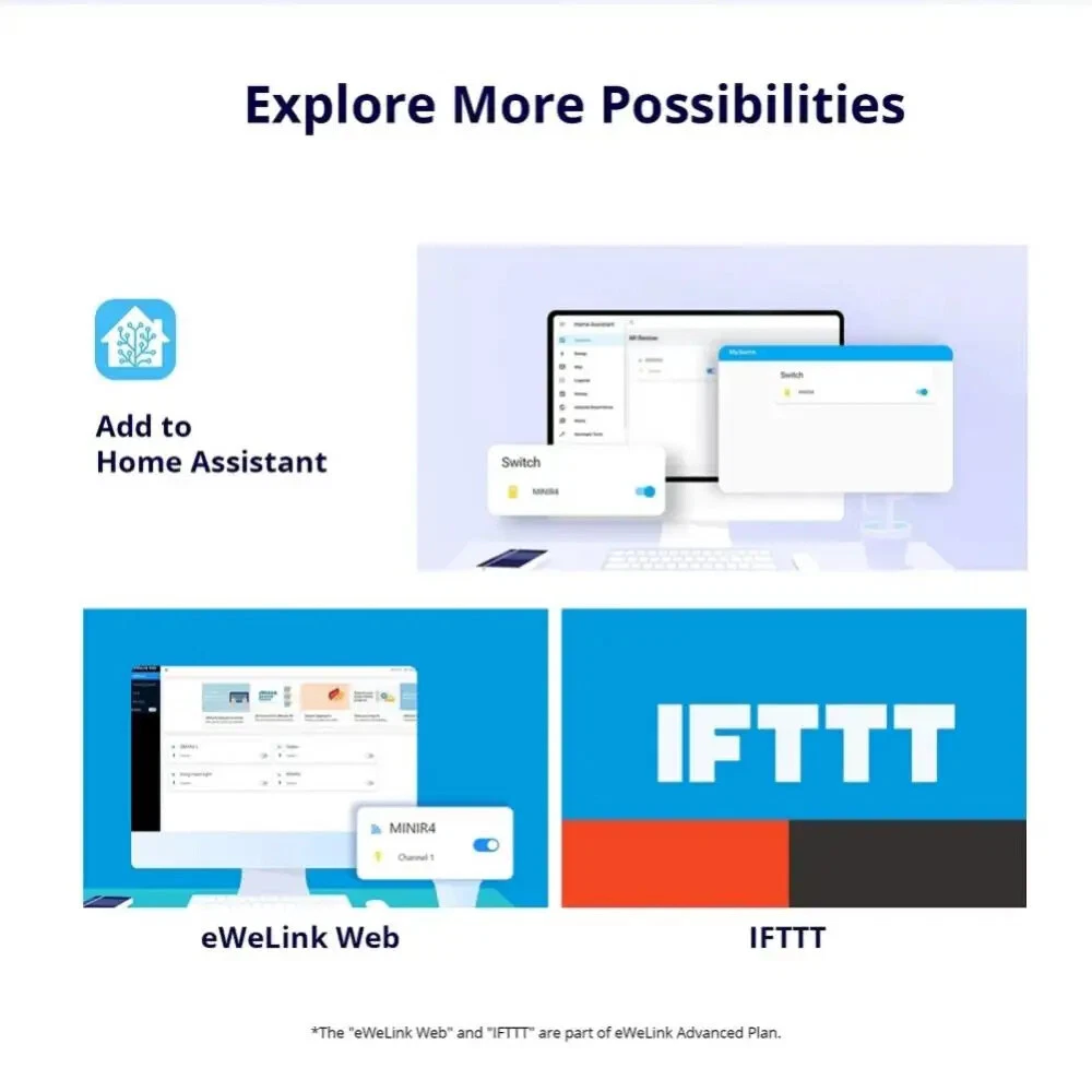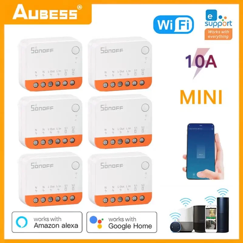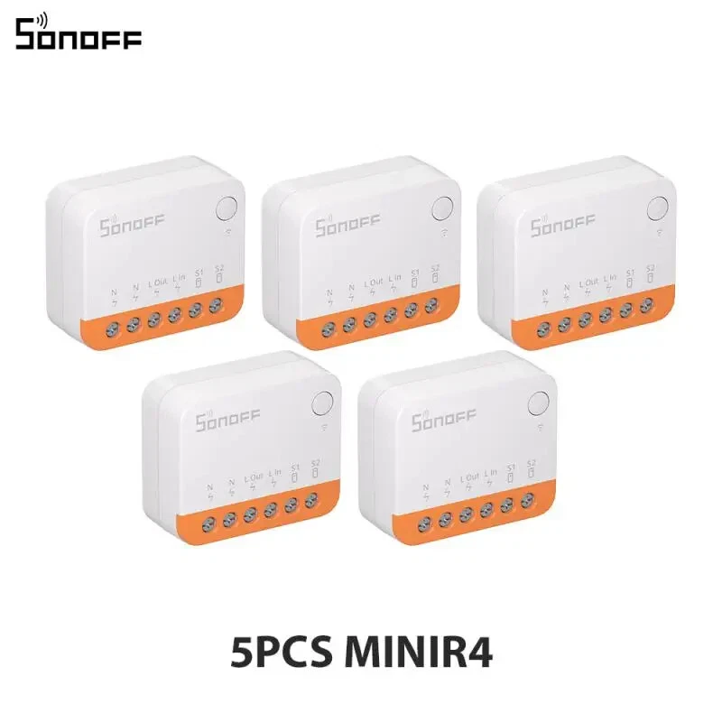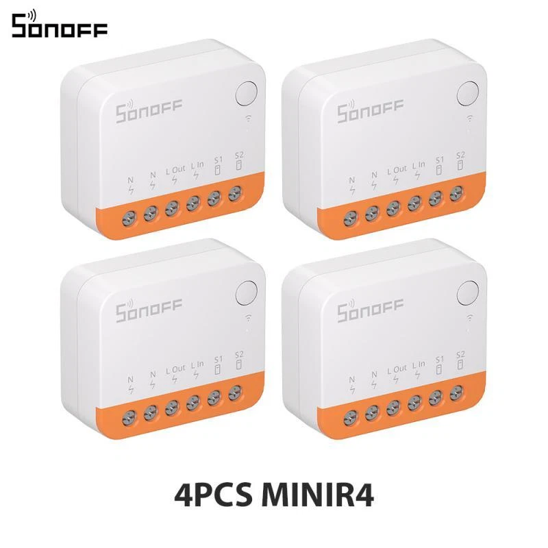 SONOFF MINI Wi-Fi Smart Switch MINIR4 Zigbee ZBMINIL2 Home Automation Relay Modules EWeLink APP Via Alexa Google Assistant Description: Model:MINIR4 Dimension:39.5x33×16.8 mm casing material: PC V0 Wifi:IEEE 802.11blg/n 2.4GHz Input:100-240V ~ 50/60Hz 10A Max outputL100-240V ~ 50/60Hz 10A Max Specifications: Mini than Ever, Adapts to Various Boxes A brand new product that turns traditional switches into smart switches, automating lights and electronic devices. It’s 40% smaller than MINIR2, fits in various mounting boxes, including the smallest European standard ones. Its compact size allows it to be installed in various mounting boxes, including the smallest European standard. Ultra-Fast ESP32 Chip The ESP32 chip is a highly sought-after solution for smart home products, boasting exceptional safety and reliability. With its speedy dual-core performance and ample memory, you can trust its ability to provide long-lasting and stable operation. Comprehensive Safety Guarantee SONOFF always prioritizes safety and designs products in strict accordance with certification requirements. Our products passed CE, FCC, and more stringent TÜV certifications. Transform Your Switches with Seamless Compatibility Easily connect to momentary switch, door exit switch, SPDT switch, latching switch, and even dry contact sensors. Detach Relay “Detach Relay” means the states of external switches and relay are separated, so operating the external switch button won’t affect relay state. As below, the smart light won’t be offline after enabling “Detach Relay”, and can App control smart lights. Multiple Control Method After pairing with MINIR4, both R5 and S-MATE can act as remote controllers to control MINIR4 locally through the eWeLink-Remote signal. MINIR4 is a smart switch with the gateway function of “eWeLink-Remote”. You can add “eWeLink-Remote” sub-devices, R5 and S-MATE, after pairing with MINIR4, both R5 and S-MATE can act as remote controllers to control MINIR4 locally through the eWeLink-Remote signal. Additional Protection -Delay Power-on State If power is restored after a power outage, set some appliances to delay the execution of the power-on state. Avoid all appliances turning on simultaneously, causing high currents to damage appliances and leaving potential safety hazards. Explore More Possibilities *The "eWeLink Web" and "IFTTT" are part of eWeLink Advanced Plan. Smart Scene Works with motion sensors, door and window sensors, and more to automate your home. Package Included: 1*Smart Switch