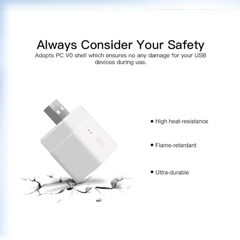 SONOFF Micro 5V USB Adapter Wifi Socket Smart Timing Charge Plug EWelink App Control Work With Alexa Google Alice Home Assistant Description: Did you miss any device out when your list of smart home devices continues to grow? For example, USB small devices like LED light strip, USB desktop fan, USB desktop lamp, USB water pump and more. Today, SONOFF introduces a USB smart adaptor with 5V input and output that makes your USB devices smart as well as provides convenience and security when you charge USB devices. Connect your USB devices with it and you will control the connected USB devices via eWeLink APP or Alexa and Google Home. The small size as your ordinary USB power adaptor, easy for you to take it anywhere around the world to charge. Specifications: Did you miss any device out when your list of smart home devices continues to grow? For example, USB small devices like LED light strip, USB desktop fan, USB desktop lamp, USB water pump and more. Today, SONOFF introduces a USB smart adaptor with 5V input and output that makes your USB devices smart as well as provides convenience and security when you charge USB devices. Connect your USB devices with it and you will control the connected USB devices via eWeLink APP or Alexa and Google Home. The small size as your ordinary USB power adaptor, easy for you to take it anywhere around the world to charge. Package Included: 1*Wireless USB Smart Adaptor