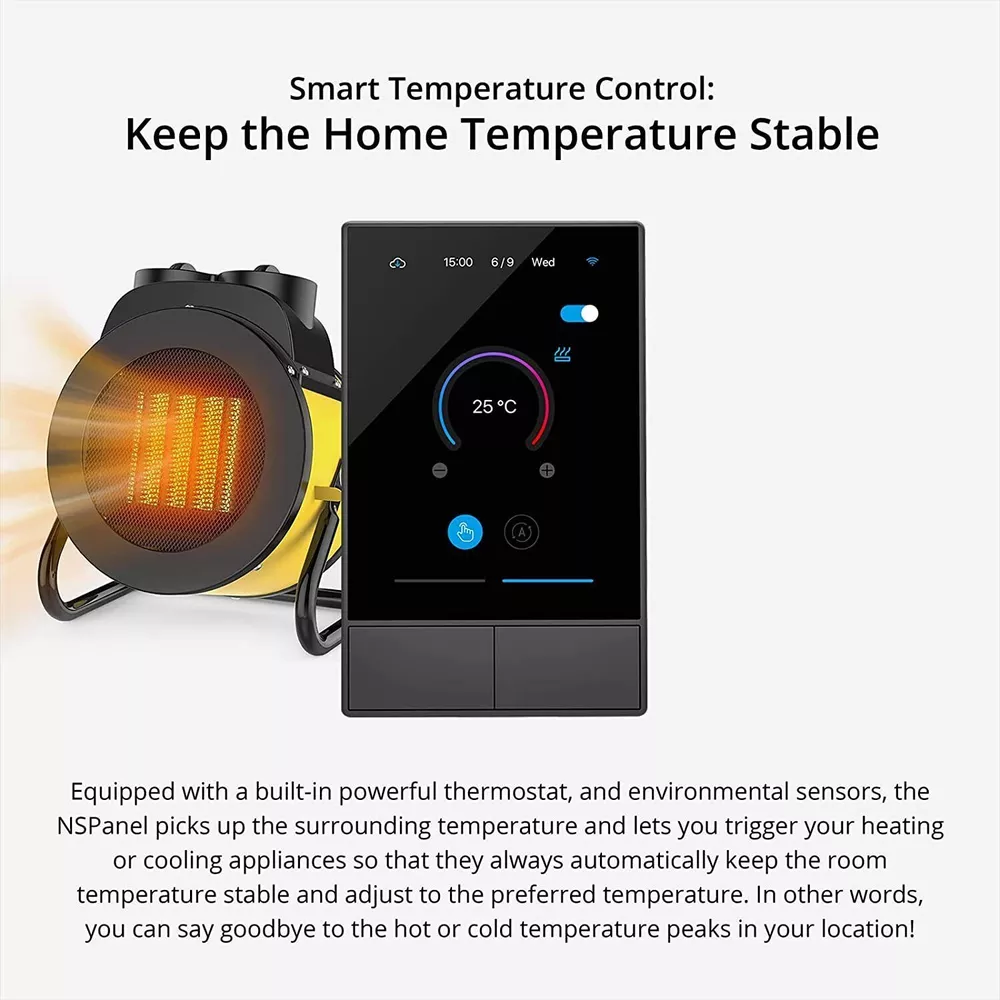 Shop Category Store Home SONOFF Series ◈ ZigBee Series ◈ Accessories ◈ WIFI Smart Lighting ◈ WIFI Smart Wall Switches DIY Smart Switches ▷ WIFI Series ♢ WIFI DIY Smart Switches ◈ Zigbee Series Zigbee Gateway & Sensors Smart Plug & Socket ▷ WIFI Plug ♢ WIFI Smart Plugs ◈ Zigbee Plug Smart Wall Switches Other Hot Item 3x SONOFF SNZB-03 Wireless ZigBee PIR Motion Sensor Smart Security Detect Alarms USD 23.98 SONOFF Zigbee Bridge Wireless Smart Switch Temperature Humidity PIR Door Sensor USD 9.49 SONOFF T1/T2/T3 EU/UK/US 1/2/3Gang WiFi Smart Wall Touch Switch for Alexa Google USD 23.74 SONOFF ZBMINI Zigbee Smart Switch Dual Way MINI APP Remote Control for eWelink USD 11.30 3PCS SONOFF SNZB-01 Zigbee Mini Wireless Smart Button Switch APP Remote Control USD 23.74 New List Item SONOFF WiFi Smart Scene Wall Switch Touch Display APP Control Do you need one device to centrally control multiple electrical appliances in your home, from lights, heaters, coolers, curtains, doors, and windows? Inconceivable!! NSPanel can control all of these devices, offering an integrated HMI panel for home automation that is super convenient, all you need to do is -- one tap. NSPanel Smart Scene Wall Switch is equipped with a built-in powerful thermostat and environmental sensors. You can set different indoor temperatures for different periods of time, and NSPanel will automatically trigger the heating or cooling equipment according to your setting conditions to keep the room at a comfortable temperature. What's more, NSPanel has a Scenario-based control function, you can set different modes for wake up, work, entertainment, and sleep, and can switch modes at any time. Such a powerful panel, how to control it? There are three ways can control SONOFF NSPanel Smart Scene Wall Switch: use the dual-channel switches or touchscreen at a close distance, use the APP to control when you are at a long distance, voice control make your hand free. NOTE: This device has a built-in thermostat. Different with the external sensor, the temperature it monitors may be affected by the heat dissipation of the device's internal body, so the displayed monitoring temperature may be slightly higher, but this will not affect the normal operation of the device. One Tap to Smart Home NSPanel centrally integrates HMI control, smart temperature control, and smart wall switch, turning your home into a convenient and smart place. Packing List: 1PCS Nspanel-US Wall Switch NOTE: This device has a built-in thermostat. Different with the external sensor, the temperature it monitors may be affected by the heat dissipation of the device's internal body, so the displayed monitoring temperature may be slightly higher, but this will not affect the normal operation of the device. One Tap to Smart Home NSPanel centrally integrates HMI control, smart temperature control, and smart wall switch, turning your home into a convenient and smart place. Payment Shipping Returns Contact Us Feedback We accept payment via Paypal only. Please settle the payment via PayPal within 5 days upon auction ended. You can left us a message about your special request. Packages will be sent out with 24-48 hours (except holidays). Packages are only shipped via Paypal Address. We will not bear for duties or taxes. We offer free shipment via Standard method. we also offer express transportation,while you need to pay for the extra postage. If you have not received your items within 30 days,please contact us trough Ebay message,please contact us before you contact ebay. We accept returning with 30-days,please add your ebay ID into the package. You can receive the replacement or money back. Working time:Beijing Time From 9:00am to 6:00pm,from Monday to Friday. (we don’t work on weekends).we will get back to soon on working time. We will appreciate for your positive feedbacks,if you have any questions,please Contact us firstly we will try our best to help you. Emails will be replied with 12 hours,replies will be delayed in holidays. All rights reserved.