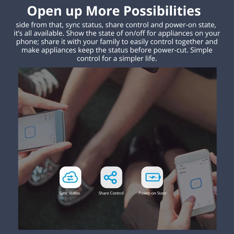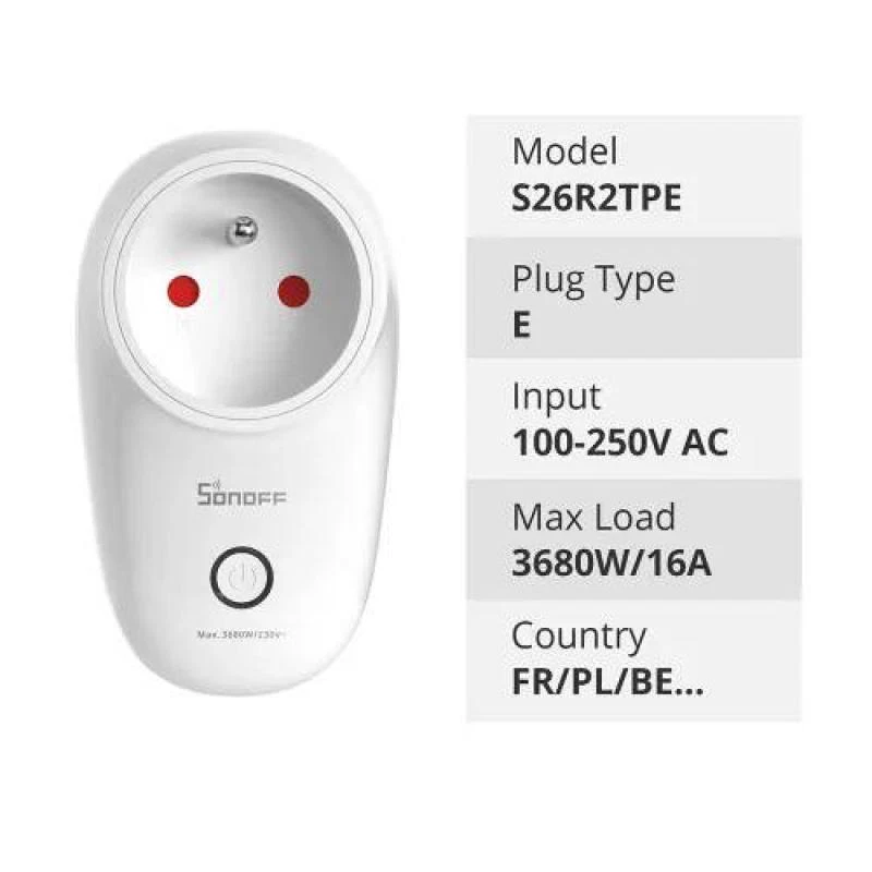 Description: S26R2 is the upgrade version of S26 with EU(Type-F)/UK/BR standard that provides the simplest way to automate your devices and appliances, it is a smart Wi-Fi heavy-duty plug-in outlet that installs in any receptacle, users can instantly convert any plug into a smart outlet with a convenient timer function that works on user's smartphone. you can turn on/off any connected device either on the APP eWeLink or by pressing the manual control knob of the WiFi plug. you can set countdown/single/repeat timers to auto-turn on/off the WiFi controlled outlet on App. and can share the WiFi plug with your family so that you can control together, this makes it perfect to control lighting and other home appliances. what's more, S26R2 is also compatible with most voice-activated assistants that , such as Amazon Alexa and Google Assistant. Specifications: 【Remote Control From Anywhere】S26R2 WiFi Plug can turn on or off your connected appliances from anywhere using eWeLink app 【Keep Your Life On Schedule】You can better control and organize your life with the scheduling benefits 【Create Smart Scenes】Set your own scenes where necessary, make your home smarter 【Group Controller】With a single touch of one button, you can manage multiple smart plugs simultaneously. 【Smart Voice Control】 Works with Amazon Alexa and Google Assistant, so you can free your hands using simple words 【Heavy Duty】Equipped to handle higher loads, up to 16A. Plug-in appliances that require more amps such as, fans, heaters, slow cooker, etc. Package Included: 1*Wifi Smart Socket