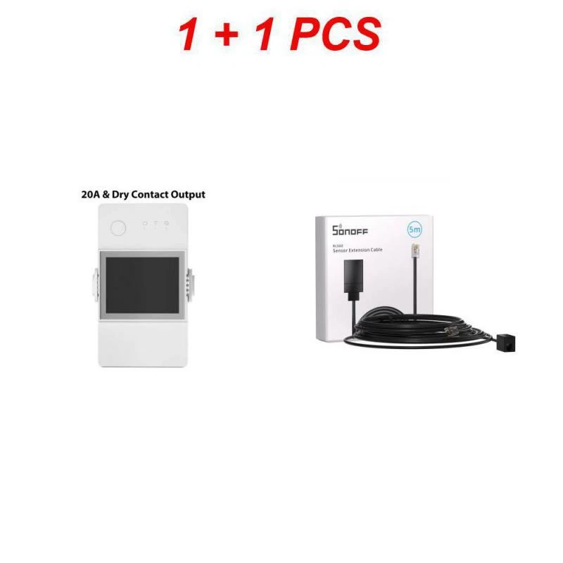 SONOFF TH16 20A Upgrade Relay Module Smart Wifi Switch Humidity Sensor Temperature Monitor Works With Alexa Google Home Description: 【20A Max & Dry Contact Output】 Support to connect 20A Max high load, dry contact output. 【LCD Screen】Real-time monitoring of temperature and humidity data, the screen refreshed every 5S. 【6-Month Temp & Humi Historical Data by Hours】 Support to review the temp & hum history data by hour, day and month. Past 6-month history data can be exported in .xlsx format and accurate to hour. 【Local Automatic Control】Support LAN control, automatic control is more reliable. You can set 8 automatic control programs for you to save electricity bills and create comfortable surroundings. 【Voice Control and Query】Work with Alexa, Google Assistant, you can query temperature and humidity values by your voice. Specifications: SONOFF TH Elite is a Smart Temperature and Humidity monitoring switch based on ESP32. With an LCD screen, TH Elite keeps monitoring the temperature and humidity in real-time, once they reach your preset threshold or the device's on/off state changes, you will receive the push notification on the phone. Support to connect 20A Max high load equipment like electric floor heating. You can replace your dry contact outputted traditional thermostat with TH Elite, to control the combi boiler or any other systems controlled by the ordinary switch. TH Elite support to review 6-Month Temp & Humi historical data accurate to the hour. In the smart scene, temperature, humidity, on, off support setting as the trigger, on, off, invert as execute actions. Support adding SONOFF devices to Home Assistant for control and automation through eWeLink add-on. TH Elite turns your traditional thermostat into smart, automates your irrigation system, and gives you an easy way to monitor the temperature and humidity. SONOFF TH Elite supports three kinds of temperature monitor and humidity monitor sensors—THS01 Temp & Humi Sensor, DS18B20 waterproof Temp sensor, and MS01 Soil Moisture Sensor. The sensor connector is upgraded to RJ11, supporting hot-plugging making the connection more stable and reliable. The RL560 sensor extension cable can connect the SONOFF temperature and humidity sensors to extend your device's distance. THS01, DS18B20 can be extended to 60M, and MS01 Soil Moisture Sensor can be extended to 10M. Package Included: 1* Temperature & Humidity sensor 1*instructions
