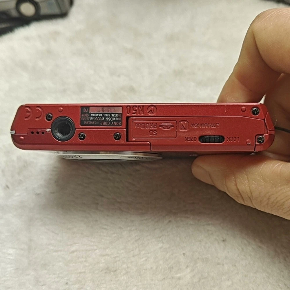 Tips: 1. The pictures are for reference only, please refer to the actual product received. Due to shooting problems, there will be some deviations in the pictures! 2. In addition, Try to avoid exposing the camera to strong light, which may cause the sensor to burn out. 3. If you find any problems after receiving the product, please contact us before scoring, customer service will do our best to deal with you, thank you~ Features: • 14.1-megapixel Super HAD CCD sensor captures clear photos with fine detail • 4× optical zoom Carl Zeiss Vario-Tessar lens delivers sharp wide-angle to zoom shots • Optical SteadyShot image stabilization reduces blur from camera shake • HD 720p video recording enables smooth capture of everyday moments • 2.7-inch LCD screen provides clear image playback and easy menu navigation • Intelligent Auto mode automatically selects optimal settings for each scene • Face Detection technology improves focus and exposure for portraits • Sweep Panorama mode allows simple capture of wide scenic images • Compact and lightweight Cyber-shot design ideal for travel and daily use • Vibrant red finish adds a bold, stylish, and eye-catching appearance W hat's in the box: ●1 x Camera ●1 x Wrist strap ●1 x Battery ●1 x Charger or charging cable ●1 x Memory Card