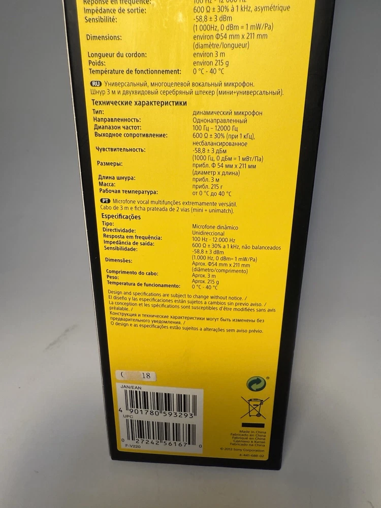This Sony F-V220 dynamic microphone is the perfect choice for home recording enthusiasts who want to capture precision sound with clarity. The unidirectional polar pattern ensures that the microphone picks up sound from a specific direction, while the medium diaphragm size and stereo features provide high-quality audio. The black color and handheld/stand-held form factor make this microphone versatile and easy to use, and it is suitable for a variety of instruments including vocals, guitar, and drums. With no California Prop 65 warning and made in China, this unit is a great addition to any pro audio equipment collection.