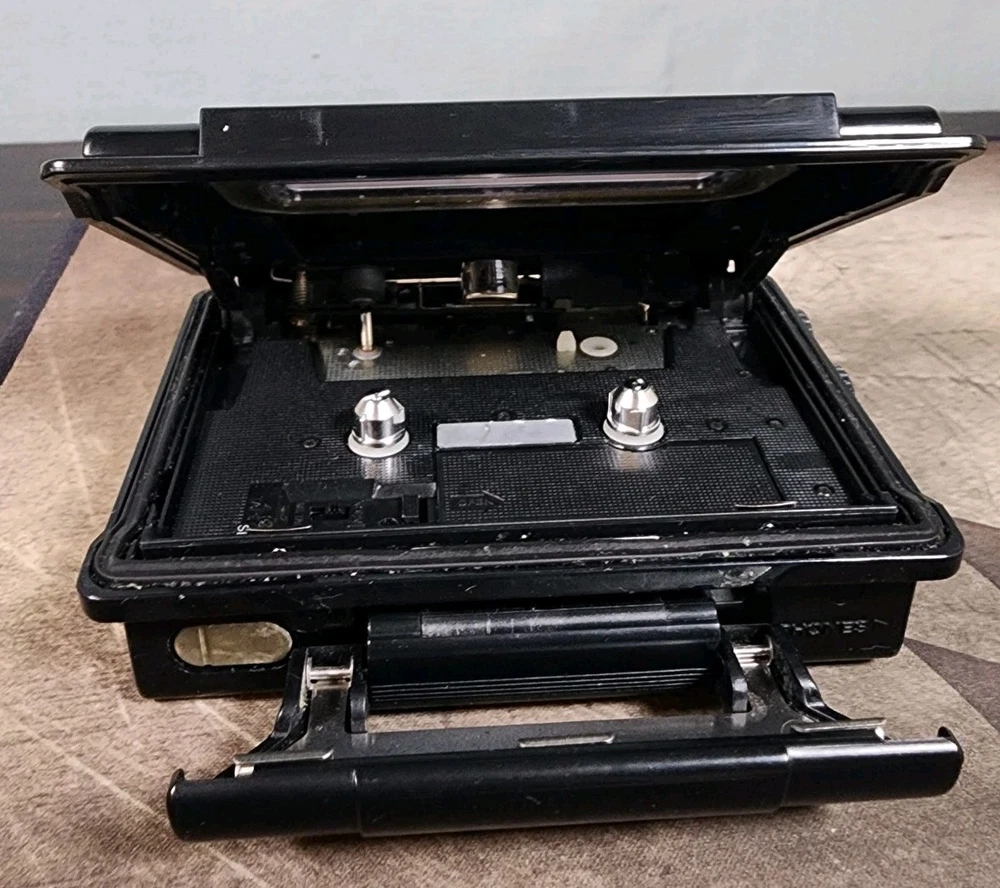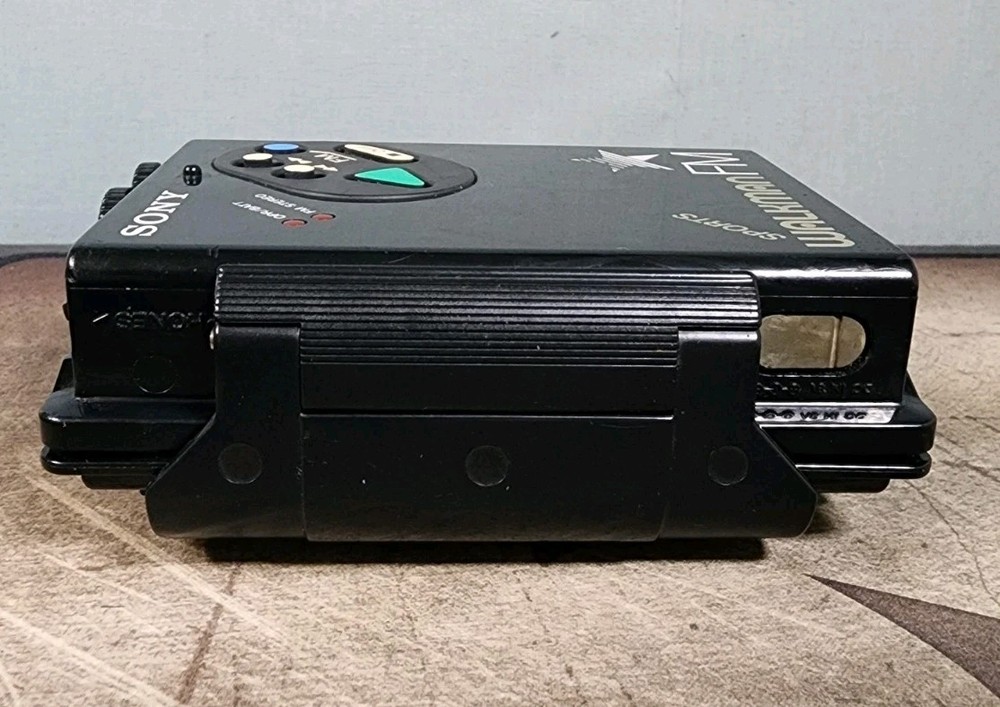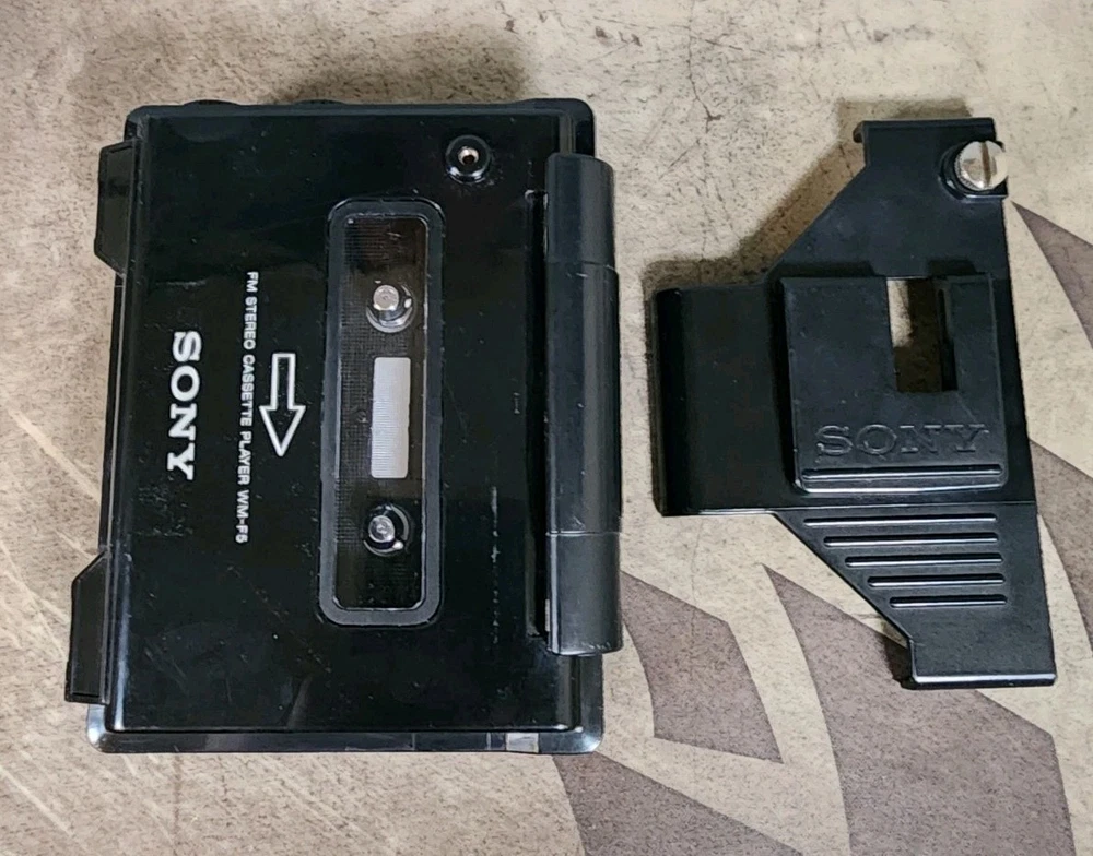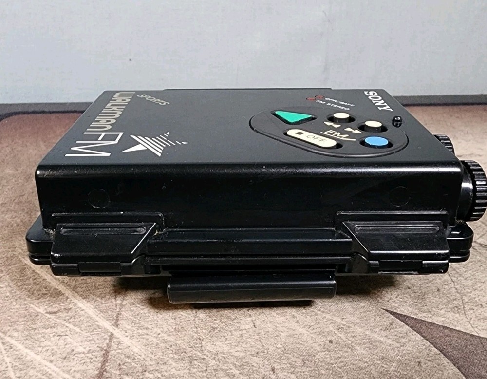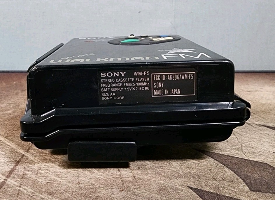 Description* SONY SPORTS WALKMAN WM-F5 Portable Cassette Player Black For Parts - Turns On. REQUIRES 2 AA BATTERIES TO OPERATE, DOESN'T SHIP WITH BATTERIES Condition* Rating: Good Flaws: This cassette turns on but doesn't play cassettes as intended. Cassette player makes clicking noise when trying to play a cassette tape. The player will occasionally play parts of the tape with heavy distortion but most of the time it doesnt play the tape at all. The radio works just fine. The rewind and fast forward buttons work as intended. Due to the problems this unit has, I believe the belt needs to be replaced. The rubber stoppers that cover audio inputs have worn off. PLEASE ASK QUESTIONS, SEE PICTURES, AND INSPECT CAREFULLY. PICTURES ARE PART OF DESCRIPTION. ANY FLAWS I NOTICE WILL BE PICTURED AND DESCRIBED AS BEST AS POSSIBLE. I COMBINE SHIPPING FOR ALL ELIGIBLE ORDERS DEPENDING ON WEIGHT, MESSAGE ME BEFOREHAND THANK YOU FOR SHOPPING!!!