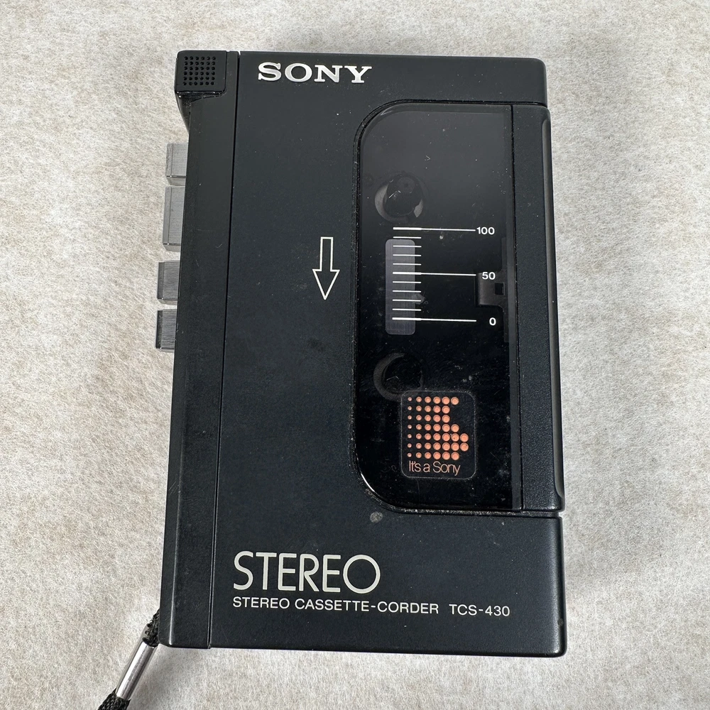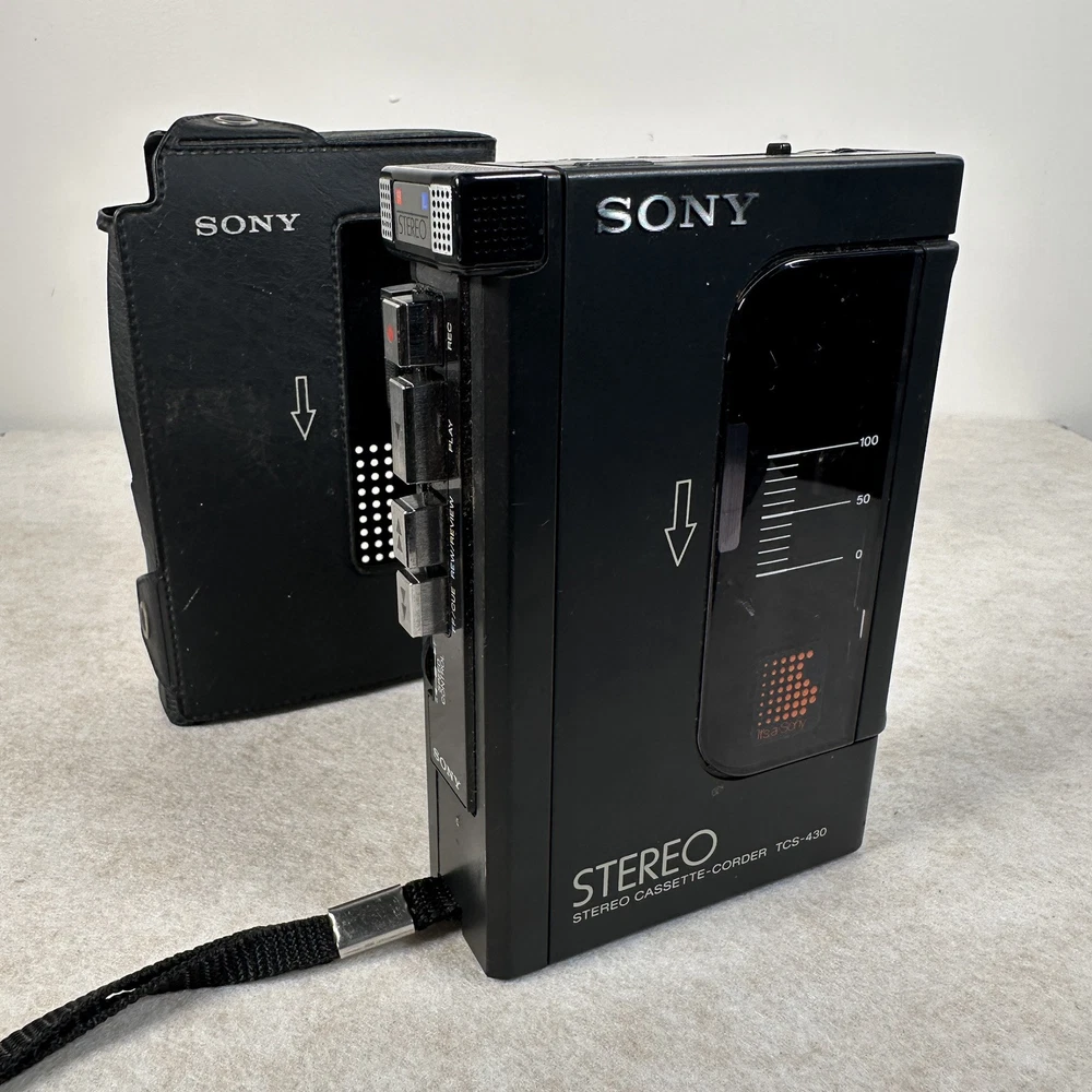 Sony TCS-430 vintage cassette player with protective case In great cosmetic condition, unable to test, sold as is not working for parts or repair Please see photos for details ACC