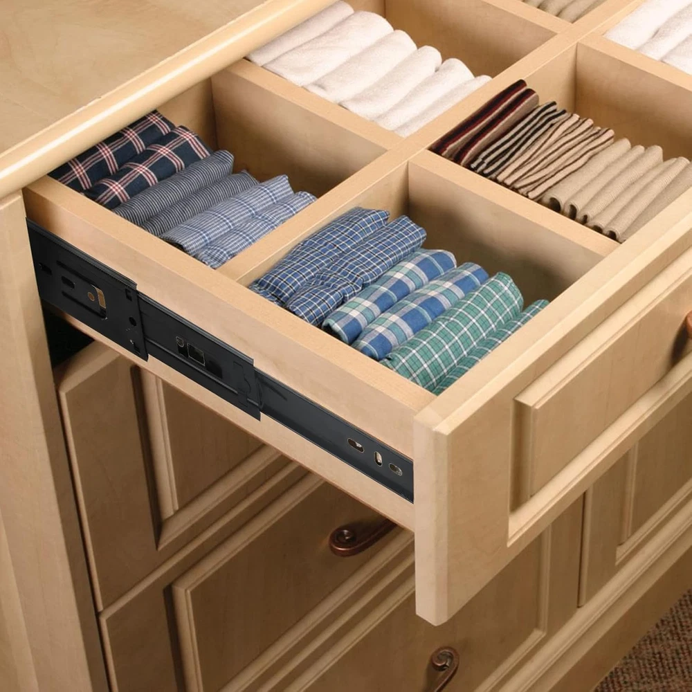 SOUJAP 6 PCS 8 Inch Full Extension Drawer Slides, 8 x 1.8 x 0.5 inch, Black Product Details Drawer Type: Ball Bearing Slide, Side Mount Manufacturer: SOUJAP Number of Items: 6 Part Number: 2302006 Item Weight: 2.59 pounds Product Dimensions: 7.87 x 1.77 x 0.49 inches Item model number: 2302006 Size: 8 x 1.8 x 0.5 inch Finish: Powder Coated Included Components: 6 x 8 inch drawer slides Batteries Included?: No Batteries Required?: No Color: Black Material: Alloy Steel Brand: SOUJAP Finish Type: Powder Coated Mounting Type: Side Mount MATERIAL - Our telescopic drawer slides are made of cold rolled steel material, carefully designed and manufactured, making them very smooth and quiet when parallel, making them the best choice for drawer slides. SIZE - Our packaging includes a total of 6 pieces of side mount drawer slides, totaling 3 pairs, each measuring 8 x 1.8 x 0.5 inches / 200 x 45 x 12.5mm, with an extension length twice that of when closed. EASY TO INSTALL - Each 8 inch drawer slides is also equipped with screws. You only need to align the pulley with the inside of the drawer and fix it with screws, and it is equipped with a shackle to easily and quickly connect or remove both slide rails. The slide rail is also designed with a self locking switch inside, which can effectively prevent automatic opening. WIDELY USED - When your furniture has been used for too long and the drawers are not sliding smoothly, our telescopic ball bearing slide is your best choice. It can also be widely used in kitchen cabinets, offices, shops, and bedrooms. HASSLE-FREE SHOPPING - Once you purchase our 8 inch drawer slides, you are entitled to a 30 day worry-free refund. Or if you have any questions or doubts about the product, please feel free to email us. We will get back to you as soon as possible. Description ABOUT US:We are committed to providing our customers with brand new and useful products. Customer satisfaction is backed by high quality products and perfect after-sales service. We take this as our company guideline. Try shopping at SOUJAP now, we won't let you down! PRODUCT FEATURES:1.The telescopic drawer slides is made of cold rolled steel material, which is sturdy, durable, and has a longer service life. 2.You will receive 6pcs side mount drawer slides, each measuring 8 x 1.8 x 0.5 inch / 200 x 45 x 12.5mm. 3.The installation of the 8 inch drawer slides is very simple, and it is equipped with a quick buckle, making connection and disassembly very convenient. 4. The telescopic ball bearing slide can be widely used in kitchen cabinets, drawers, office tables, and more. SPECIFICATIONS: Material: cold rolled steel Size: 8 x 1.8 x 0.5 inch / 200 x 45 x 12.5mm Color: black Quantity: 6 x 8 inch drawer slides