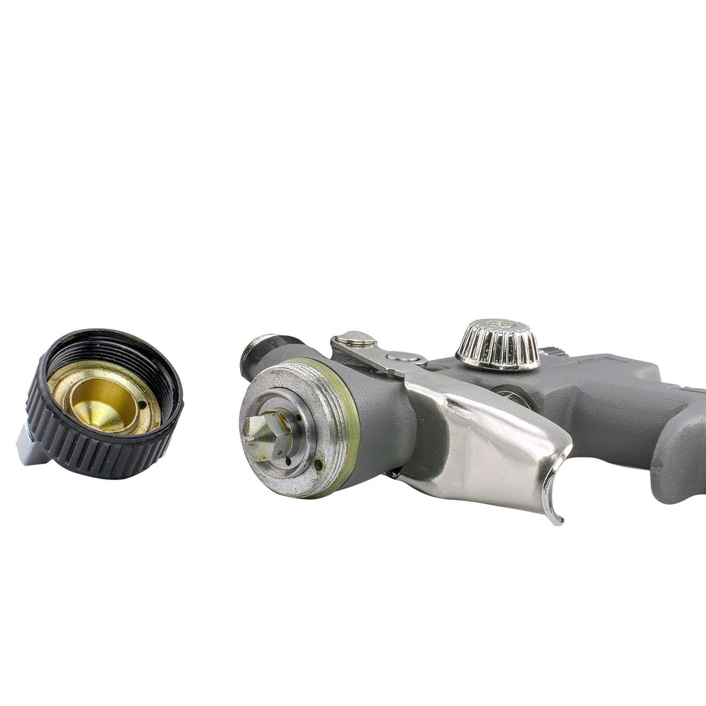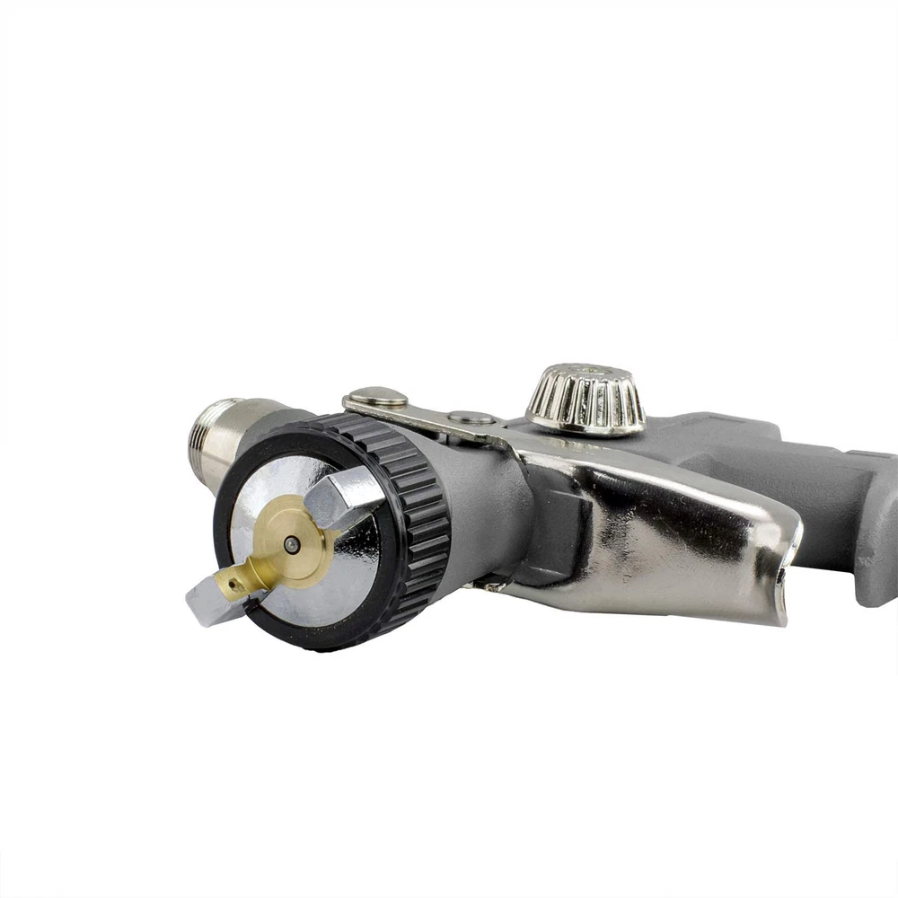 The SPS08 Pneumatic 0.8mm Tip Mini HVLP Gravity Feed Spray with 125cc Plastic Cup is perfect for the atomization of paint. Use this air powered paint sprayer for projects around the home such as painting furniture and woodworking, along with automotive and industrial applications. This High Volume Low Pressure pneumatic spray generates high output with improved paint transfer, and has less overspray. Three adjustable control knobs (pattern, fluid, and air control) provide tremendous versatility with precision. The pattern control knob allows you to switch between a full or round spray, and the fluid control regulates the amount of paint mixed with air from the compressor. The air control knob is used to increase or decrease the overall air flow. Additionally, turning the air cap ring at the end of the nozzle adjusts the direction of the spray fan to either vertical or horizontal, useful when spraying either side to side or top to bottom. The trigger of this spray has a -step design. Press the trigger to the first step and connect to the air source, ensuring the flow of air. Pressing further allows the spray to engage the paint in the 125cc (4 oz.) gravity fed cup. The piece ergonomically designed body of this miniature paint sprayer is constructed of aluminum, while the needle and nozzle are made of stainless steel. This results in a balanced, light weight, and durable tool great for use over extended periods of time. A regulator and different types of 1/4" NPT air connector fittings are included (standard and automotive), along with a cleaning kit and adjustment tool. The Pneumatic 0.8mm Tip Mini HVLP Gravity Feed Spray with 125cc Plastic Cup will reduce paint costs and increase productivity for DIYers and contractors, and is covered by 's 1 Year Limited and 30 Day Wearable Parts . Ideal for use around the home for painting furniture and woodworking, as well as automotive and industrial applications HVLP design generates high output with improved paint transfer and less overspray 3 adjustable control knobs (pattern, fluid, and air flow) provide great versatility with precision Stainless steel spray needle and nozzle enhance durability and extend life of the tool 125cc plastic cup with screw-on lid prevents accidental spilling Ergonomically designed piece aluminum body reduces painter fatigue and increases control Includes regulator, standard and automotive air connectors, cleaning kit, and adjustment tool Add the SPSCK 22-Piece Cleaning Kit for Spray when purchasing to thoroughly clean and extend the life of this paint sprayer