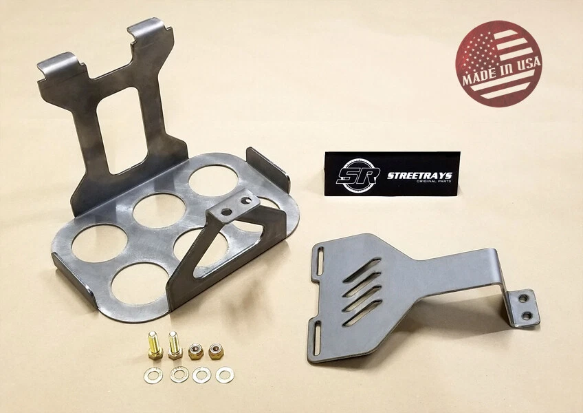 StreetRays [Originals] Battery Hold Down Tray Box Mount Optima Group 34/78 Steel Mounting Bracket All StreetRays [originals] parts are fabricated right here in Central Texas! where precision & quality finish is the main focus. StreetRays steel battery hold down box for Optima batteries will allow you to secure and install your new Group 34/78 (Red & Yellow Top) battery on any flat surface. It's anywhere you can bolt the tray down, such as trunk, seat pan, side wall, bulk head, floor, frame. And our battery hold down can be installed in car, truck, boats, Side by Side, or any ATV & UTV. Simply bolt the base down with 4 bolts and drop the battery in the box and bolt the top cover onto the base and done! Fitment Note: This will NOT fit the 34R batteries as they are different from Group 34 batteries. StreetRays battery hold down brackets / box is CNC cut from 11 Gauge A1008 USA Steel sheet and formed on our Amada press brake to give you reliable product each and every time. The battery box is not painted so you can create your own custom finish or install it as it is. Simply bolt it down and you're ready to go. Our battery box will hold your battery in place no matter what. It's lightweight and it's effective and super easy to place and install. We include 2 pairs of nuts & bolts to close the box.