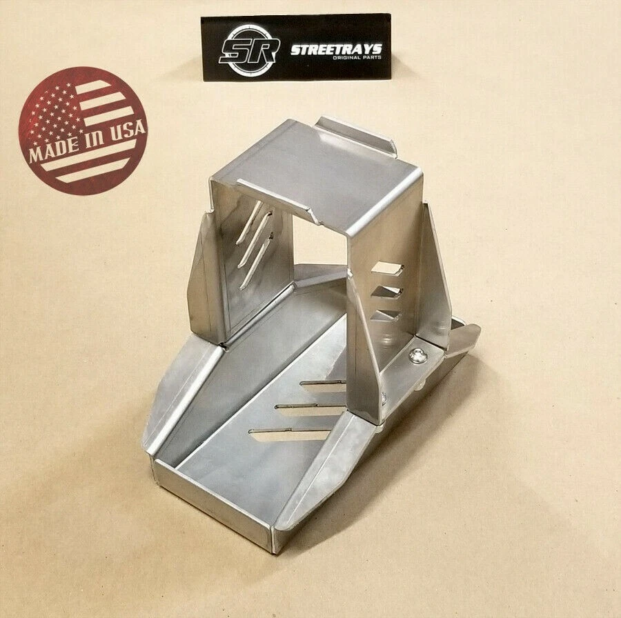 StreetRays [Originals] Battery Hold Down Box for PC680 Odyssey Upright terminal Mounting Bracket (Aluminum) Part # SRX_Upright_PC680_Box All StreetRays [originals] parts are fabricated right here in Central Texas! where precision & quality finish is the main focus. This version of StreetRays PC680 battery hold down box will allow you to secure and install your new PC680 battery on any flat surface in upright terminal position. Our battery box can be installed anywhere you can bolt the tray down, such as trunk, seat pan, side wall, bulk head, floor, frame. And our battery hold down can be installed in car, truck, boats, Side by Side, or any ATV & UTV. Simply drill and prep 4-6 mounting holes and put the battery in place and bolt down the cover onto the battery and done! StreetRays battery hold down brackets / box is CNC cut from thick aluminum sheet and formed on our Amada press brake to give you reliable product each and every time. There is no need to paint it, although you can. Simply bolt it down and you're ready to go.