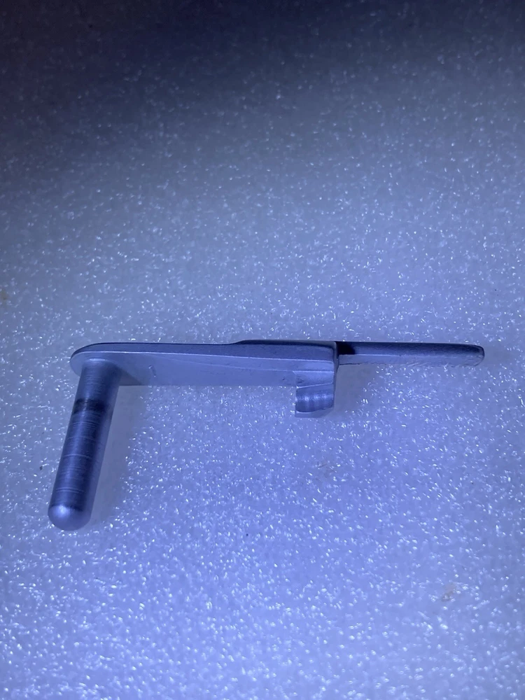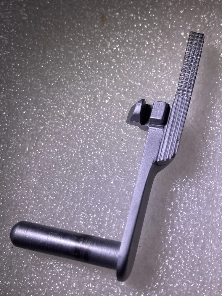 SS 1911 Extended Thin Slide Release, custom made, no mfg. mark. A magnet will attract this pistol part, although it appears to be stainless steel. Strong checkering on release pad, includes half serrations. Please view all of the images as they are a part of the description. 📸 Shipping in the USA is $6.00 for Ground Advantage Mail including Tracking and Insurance. 📮
