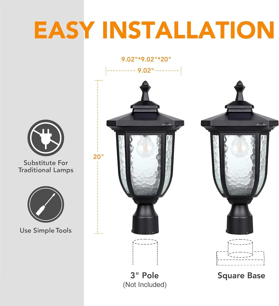 Store New Arrivals Add to Favorite View Feedback Contact ST4322Q-A Solar Post Light Solar Powered Lamp Post Light Post Solar Light Outdoor Fabulously Bright 120 LUMENS Made of Aluminum Die-Casting and Glass with 3 Inches Post Adaptor Description Light Source Type LED Item model number ST4322Q-A Style Classic Number of Items 1 Power Source Solar Powered Number of Light Sources 120 Control Method Touch Warranty Description 3 year. Lighting Method Solar Lamp Type Night Light Number of Pieces 1 Room Type Patio Assembly required Yes Bulb Shape Size B17 Installation Type Wall Mount Batteries required Yes Product Dimensions 9.2"D x 20"W x 9.2"H Material Aluminum Shape Rectangular Efficiency High Switch Type Toggle Finish Type Polished Specific Uses For Product Decoration Included Components Battery Indoor/Outdoor Usage Outdoor Brightness 120 Lumen Country of Origin China Water Resistance Level Waterproof Item Weight 2.56 Kilograms Connectivity Technology USB Special Feature Energy Efficient, Rechargeable Bulb Base GX53 Shade Color black Mounting Type Wall Mount Color Black Wattage 3 watts Is Cordless? Yes Base Material Aluminum Is Waterproof True Batteries 3 AA batteries required. (included) Voltage 3.7 Volts Recommended Uses For Product Decoration Shade Material Glass, Aluminum Finish types Polished Base Diameter 3 Inches Size Lamp High Brightness -Post Solar Light 120 Lumens provides quite gentle and warm light for your garden, which makes your front and back yard unique and matchless. Easy installation -Quite Easy to Install Post solar lights in just a few minutes as no requirement of electrical wiring, but just place it in a desirable spot with direct sunshine. Money Saving and Energy Saving -Solar lamp post light powered by free solar energy, three pieces high efficiency rechargeable batteries included. Solar post lights will be automatically working at dusk and off at dawn as there is light sensor included. Convenient to Use -Solar lamp post light outdoor, the only maintenance required is an occasional wipe of the solar panel with a damp cloth. -Patio solar light is guaranteed to be free from defects in material and workmanship for one (1) year following the date of purchase. If any problem, please just for prompt service for . Through both professional design and efficient solar-powered technology, these solar patio lights are completely wireless and can be mounted onto your fence, patio, pole etc The classic design of our solar post light adds an elegant touch to your front or back yard. You can use it in your yard to light up your driveway, patio, pillar or flowerbeds and more. No wiring and no electricity bill anymore. A must-have for everyone's garden to accent your outer decor. ABOUT INSTALLATION You can easily install it on a surface on the top of a pillar, post, or wall, etc. However, some people do fasten it to a pole. There are screw holes in the base that can be used to fasten the light to a pole or post (screws are included). ABOUT BATTERY The fully charged battery by solar is powerful enough to light up to 6 to 8 hours at night. The battery MUST be fully charged under SUNLIGHT before the first use. Size : 1 Pack 1 x KMC Lighting solar post light ST4322Q-A 3 x Rechargeable batteries AA 1.2v 2300mAH Ni-MH 1 x User instruction manual Specification Color : Black LED color : Warm white LED Quantity : 3pcs high bright filament LEDs Solar cells : High-efficiency amorphous solar cellsSwitch : ON / OFF NotesThe number of hours solar post light stays on depends on your geographical location, weather conditions and seasonal sunlight availability, normally are 6-8 hours. This product s one year . Post Size : The post solar lights are fit with posts 3 inches round. ABOUT US We offer the best prices around on high quality products. Our E-store includes media such as books, movies, music and games while offering electronics, toys, sporting apparel, clothing, tools, general home, garden items and more. SHIPPING We are always working hard to ensure your package arrives as soon as possible. Please understand that some factors like weather, high postal traffic, and the performance of shipping companies are outside of our control. We offer free shipping to the lower 48 states and ship within 2 business days of payment, usually sooner. We do not accept P.O. Boxes. Please provide a physical address. For shipping outside of the continental USA, we only use eBay's Global Shipping Program.The item is shipped to KY and then sent to the rest of the world. International customers are responsible for all duties and taxes. Continue to check out in order to calculate costs for shipping the item to your country. Messages regarding eBay's Global Shipping Program MUST be directed at eBay EXCLUSIVELY. RETURNS We offer a 30-Day Return Policy on items which you are not completely satisfied with. You have the option for a full-refund or an exchange of the item. No returns are available on items shipped outside of the USA. PAYMENT We accept PayPal. CONTACT US This page content is yet to come Please ad us to your favorite seller and visit again later Thank You CUSTOMER SATISFACTION We try our very best to make sure every customer is completely satisfied. If there's a problem, message us! We're happy to help. WE ACCEPT Copyright © 2021 AutoDS. | All Rights Reserved