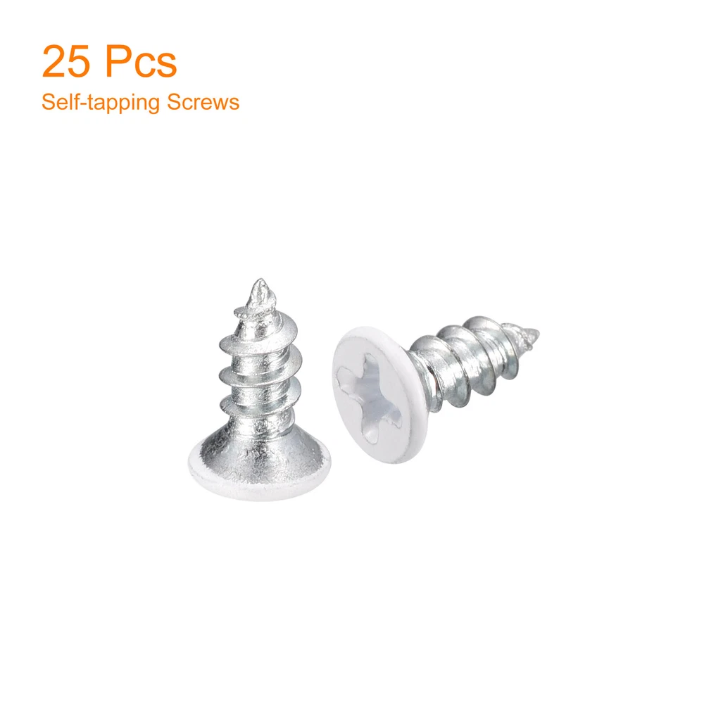 Document Description:1. Material: Self-tapping screws are made of carbon steel, high strength, head for white spray, more beautiful, screw zinc plating finish, rust prevention, wear resistance and corrosion resistance, very durable.2. Advantages: The flat head design allows these screws to be inserted flush with the surface. The self-tapping design allows faster screwing into hardwood, reducing cracking problems. For different materials, even wood materials, spray metal sheets or other materials, cross grooves are easy to drill into.3. Application: Flat head Phillips self-tapping screws are mainly used on different occasions such as furniture, wardrobe, office furniture, wooden doors, toilet equipment and so on. Widely used in electronics, communication, power products, and floor fastening applications.Specification:Product Name: Flat Head Phillips Screws/Self-drilling ScrewsMaterial: Carbon SteelSurface Finish: Zinc Plated(Screw), Spray(Head)Dimension: ST4 x 10mm / ST4 x 0.39"(Thread D* Total L)Head Size: 8 x 3mm / 0.31" x 0.12"(D*T)Package Content: 25pcs x Self-tapping Screws ST4x10mm White Self Tapping Screws, 25pcs Flat Head Phillips Wood Screws Description: 1. Material: Self-tapping screws are made of carbon steel, high strength, head for white spray, more beautiful, screw zinc plating finish, rust prevention, wear resistance and corrosion resistance, very durable. 2. Advantages: The flat head design allows these screws to be inserted flush with the surface. The self-tapping design allows faster screwing into hardwood, reducing cracking problems. For different materials, even wood materials, spray metal sheets or other materials, cross grooves are easy to drill into. 3. Application: Flat head Phillips self-tapping screws are mainly used on different occasions such as furniture, wardrobe, office furniture, wooden doors, toilet equipment and so on. Widely used in electronics, communication, power products, and floor fastening applications. Specification: Product Name: Flat Head Phillips Screws/Self-drilling Screws Material: Carbon Steel Surface Finish: Zinc Plated(Screw), Spray(Head) Dimension: ST4 x 10mm / ST4 x 0.39"(Thread D* Total L) Head Size: 8 x 3mm / 0.31" x 0.12"(D*T) Package Content: 25pcs x Self-tapping Screws Hot Item Payment 1.We accept eBay payment . 2.Payment must be received within 7 business days of auction closing. Shipping 1.We ship to your eBay or Paypal address. Please make sure your eBay and Paypal address is correct before you pay. 2.Items will be shipped within 1-3 business day when we received payment. 3.Delivery time depends on destination and other factors. Description Policy ST4x10mm White Self Tapping Screws, 25pcs Flat Head Phillips Wood Screws Description: 1. Material: Self-tapping screws are made of carbon steel, high strength, head for white spray, more beautiful, screw zinc plating finish, rust prevention, wear resistance and corrosion resistance, very durable. 2. Advantages: The flat head design allows these screws to be inserted flush with the surface. The self-tapping design allows faster screwing into hardwood, reducing cracking problems. For different materials, even wood materials, spray metal sheets or other materials, cross grooves are easy to drill into. 3. Application: Flat head Phillips self-tapping screws are mainly used on different occasions such as furniture, wardrobe, office furniture, wooden doors, toilet equipment and so on. Widely used in electronics, communication, power products, and floor fastening applications. Specification: Product Name: Flat Head Phillips Screws/Self-drilling Screws Material: Carbon Steel Surface Finish: Zinc Plated(Screw), Spray(Head) Dimension: ST4 x 10mm / ST4 x 0.39"(Thread D* Total L) Head Size: 8 x 3mm / 0.31" x 0.12"(D*T) Package Content: 25pcs x Self-tapping Screws Hot Item Payment 1.We accept eBay payment . 2.Payment must be received within 7 business days of auction closing. Shipping 1.We ship to your eBay or Paypal address. Please make sure your eBay and Paypal address is correct before you pay. 2.Items will be shipped within 1-3 business day when we received payment. 3.Delivery time depends on destination and other factors.