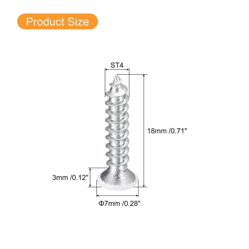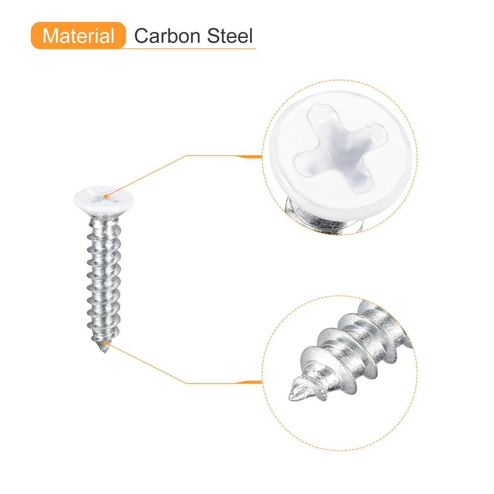Document Description:1. Material: Self-tapping screws are made of carbon steel, high strength, head for white spray, more beautiful, screw zinc plating finish, rust prevention, wear resistance and corrosion resistance, very durable.2. Advantages: The flat head design allows these screws to be inserted flush with the surface. The self-tapping design allows faster screwing into hardwood, reducing cracking problems. For different materials, even wood materials, spray metal sheets or other materials, cross grooves are easy to drill into.3. Application: Flat head Phillips self-tapping screws are mainly used on different occasions such as furniture, wardrobe, office furniture, wooden doors, toilet equipment and so on. Widely used in electronics, communication, power products, and floor fastening applications.Specification:Product Name: Flat Head Phillips Screws/Self-drilling ScrewsMaterial: Carbon SteelSurface Finish: Zinc Plated(Screw), Spray(Head)Dimension: ST4 x 18mm / ST4 x 0.71"(Thread D* Total L)Head Size: 7 x 3mm / 0.28" x 0.12"(D*T)Package Content: 100pcs x Self-tapping Screws ST4x18mm White Self Tapping Screws, 100pcs Flat Head Phillips Wood Screws Description: 1. Material: Self-tapping screws are made of carbon steel, high strength, head for white spray, more beautiful, screw zinc plating finish, rust prevention, wear resistance and corrosion resistance, very durable. 2. Advantages: The flat head design allows these screws to be inserted flush with the surface. The self-tapping design allows faster screwing into hardwood, reducing cracking problems. For different materials, even wood materials, spray metal sheets or other materials, cross grooves are easy to drill into. 3. Application: Flat head Phillips self-tapping screws are mainly used on different occasions such as furniture, wardrobe, office furniture, wooden doors, toilet equipment and so on. Widely used in electronics, communication, power products, and floor fastening applications. Specification: Product Name: Flat Head Phillips Screws/Self-drilling Screws Material: Carbon Steel Surface Finish: Zinc Plated(Screw), Spray(Head) Dimension: ST4 x 18mm / ST4 x 0.71"(Thread D* Total L) Head Size: 7 x 3mm / 0.28" x 0.12"(D*T) Package Content: 100pcs x Self-tapping Screws Hot Item Payment 1.We accept eBay payment . 2.Payment must be received within 7 business days of auction closing. Shipping 1.We ship to your eBay or Paypal address. Please make sure your eBay and Paypal address is correct before you pay. 2.Items will be shipped within 1-3 business day when we received payment. 3.Delivery time depends on destination and other factors. Description Policy ST4x18mm White Self Tapping Screws, 100pcs Flat Head Phillips Wood Screws Description: 1. Material: Self-tapping screws are made of carbon steel, high strength, head for white spray, more beautiful, screw zinc plating finish, rust prevention, wear resistance and corrosion resistance, very durable. 2. Advantages: The flat head design allows these screws to be inserted flush with the surface. The self-tapping design allows faster screwing into hardwood, reducing cracking problems. For different materials, even wood materials, spray metal sheets or other materials, cross grooves are easy to drill into. 3. Application: Flat head Phillips self-tapping screws are mainly used on different occasions such as furniture, wardrobe, office furniture, wooden doors, toilet equipment and so on. Widely used in electronics, communication, power products, and floor fastening applications. Specification: Product Name: Flat Head Phillips Screws/Self-drilling Screws Material: Carbon Steel Surface Finish: Zinc Plated(Screw), Spray(Head) Dimension: ST4 x 18mm / ST4 x 0.71"(Thread D* Total L) Head Size: 7 x 3mm / 0.28" x 0.12"(D*T) Package Content: 100pcs x Self-tapping Screws Hot Item Payment 1.We accept eBay payment . 2.Payment must be received within 7 business days of auction closing. Shipping 1.We ship to your eBay or Paypal address. Please make sure your eBay and Paypal address is correct before you pay. 2.Items will be shipped within 1-3 business day when we received payment. 3.Delivery time depends on destination and other factors.