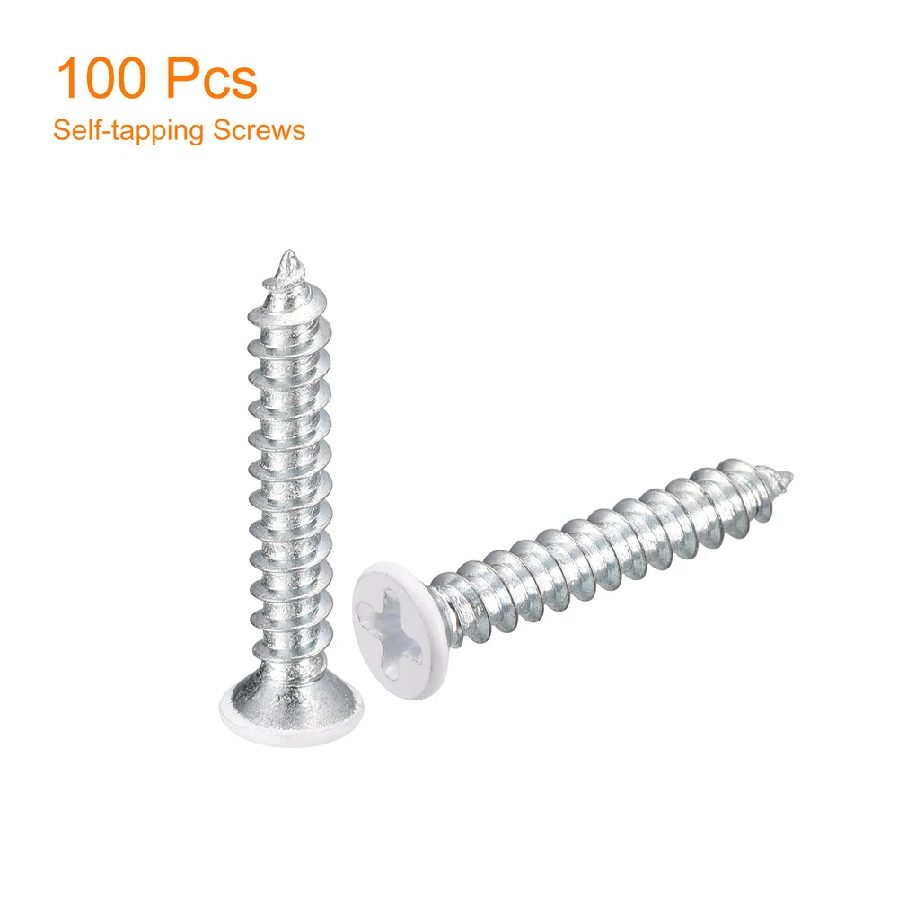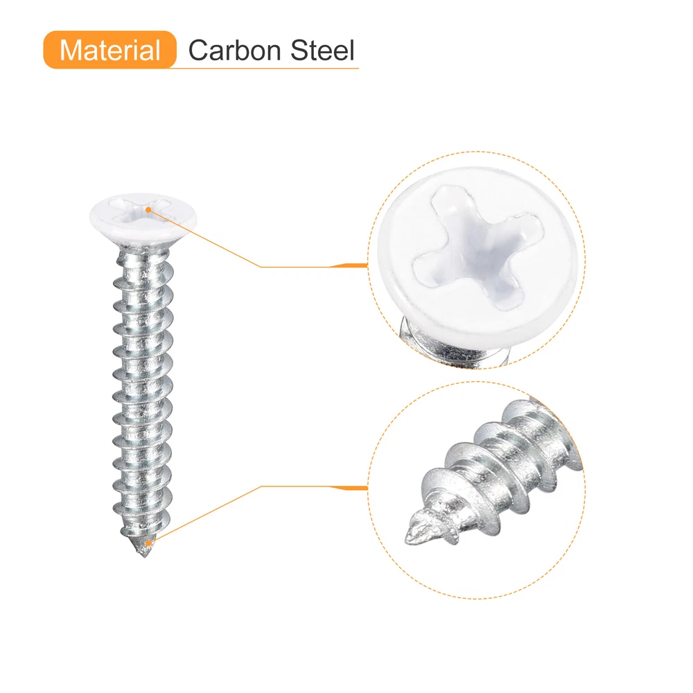 Document Description:1. Material: Self-tapping screws are made of carbon steel, high strength, head for white spray, more beautiful, screw zinc plating finish, rust prevention, wear resistance and corrosion resistance, very durable.2. Advantages: The flat head design allows these screws to be inserted flush with the surface. The self-tapping design allows faster screwing into hardwood, reducing cracking problems. For different materials, even wood materials, spray metal sheets or other materials, cross grooves are easy to drill into.3. Application: Flat head Phillips self-tapping screws are mainly used on different occasions such as furniture, wardrobe, office furniture, wooden doors, toilet equipment and so on. Widely used in electronics, communication, power products, and floor fastening applications.Specification:Product Name: Flat Head Phillips Screws/Self-drilling ScrewsMaterial: Carbon SteelSurface Finish: Zinc Plated(Screw), Spray(Head)Dimension: ST4 x 25mm / ST4 x 0.98"(Thread D* Total L)Head Size: 7 x 2.5mm / 0.28" x 0.1"(D*T)Package Content: 100pcs x Self-tapping Screws ST4x25mm White Self Tapping Screws, 100pcs Flat Head Phillips Wood Screws Description: 1. Material: Self-tapping screws are made of carbon steel, high strength, head for white spray, more beautiful, screw zinc plating finish, rust prevention, wear resistance and corrosion resistance, very durable. 2. Advantages: The flat head design allows these screws to be inserted flush with the surface. The self-tapping design allows faster screwing into hardwood, reducing cracking problems. For different materials, even wood materials, spray metal sheets or other materials, cross grooves are easy to drill into. 3. Application: Flat head Phillips self-tapping screws are mainly used on different occasions such as furniture, wardrobe, office furniture, wooden doors, toilet equipment and so on. Widely used in electronics, communication, power products, and floor fastening applications. Specification: Product Name: Flat Head Phillips Screws/Self-drilling Screws Material: Carbon Steel Surface Finish: Zinc Plated(Screw), Spray(Head) Dimension: ST4 x 25mm / ST4 x 0.98"(Thread D* Total L) Head Size: 7 x 2.5mm / 0.28" x 0.1"(D*T) Package Content: 100pcs x Self-tapping Screws Hot Item Payment 1.We accept eBay payment . 2.Payment must be received within 7 business days of auction closing. Shipping 1.We ship to your eBay or Paypal address. Please make sure your eBay and Paypal address is correct before you pay. 2.Items will be shipped within 1-3 business day when we received payment. 3.Delivery time depends on destination and other factors. Description Policy ST4x25mm White Self Tapping Screws, 100pcs Flat Head Phillips Wood Screws Description: 1. Material: Self-tapping screws are made of carbon steel, high strength, head for white spray, more beautiful, screw zinc plating finish, rust prevention, wear resistance and corrosion resistance, very durable. 2. Advantages: The flat head design allows these screws to be inserted flush with the surface. The self-tapping design allows faster screwing into hardwood, reducing cracking problems. For different materials, even wood materials, spray metal sheets or other materials, cross grooves are easy to drill into. 3. Application: Flat head Phillips self-tapping screws are mainly used on different occasions such as furniture, wardrobe, office furniture, wooden doors, toilet equipment and so on. Widely used in electronics, communication, power products, and floor fastening applications. Specification: Product Name: Flat Head Phillips Screws/Self-drilling Screws Material: Carbon Steel Surface Finish: Zinc Plated(Screw), Spray(Head) Dimension: ST4 x 25mm / ST4 x 0.98"(Thread D* Total L) Head Size: 7 x 2.5mm / 0.28" x 0.1"(D*T) Package Content: 100pcs x Self-tapping Screws Hot Item Payment 1.We accept eBay payment . 2.Payment must be received within 7 business days of auction closing. Shipping 1.We ship to your eBay or Paypal address. Please make sure your eBay and Paypal address is correct before you pay. 2.Items will be shipped within 1-3 business day when we received payment. 3.Delivery time depends on destination and other factors.