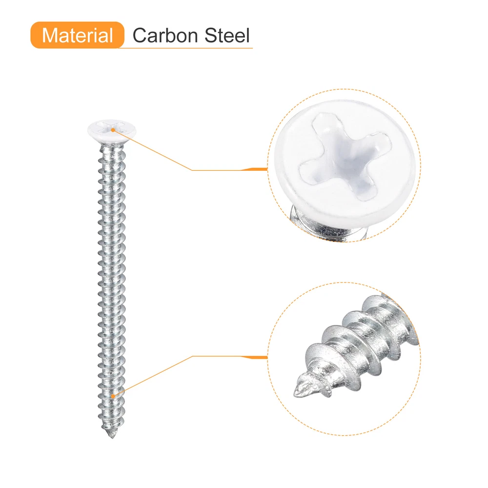 Document Description:1. Material: Self-tapping screws are made of carbon steel, high strength, head for white spray, more beautiful, screw zinc plating finish, rust prevention, wear resistance and corrosion resistance, very durable.2. Advantages: The flat head design allows these screws to be inserted flush with the surface. The self-tapping design allows faster screwing into hardwood, reducing cracking problems. For different materials, even wood materials, spray metal sheets or other materials, cross grooves are easy to drill into.3. Application: Flat head Phillips self-tapping screws are mainly used on different occasions such as furniture, wardrobe, office furniture, wooden doors, toilet equipment and so on. Widely used in electronics, communication, power products, and floor fastening applications.Specification:Product Name: Flat Head Phillips Screws/Self-drilling ScrewsMaterial: Carbon SteelSurface Finish: Zinc Plated(Screw), Spray(Head)Dimension: ST4 x 50mm / ST4 x 1.97"(Thread D* Total L)Head Size: 7 x 2.5mm / 0.28" x 0.1"(D*T)Package Content: 50pcs x Self-tapping Screws ST4x50mm White Self Tapping Screws, 50pcs Flat Head Phillips Wood Screws Description: 1. Material: Self-tapping screws are made of carbon steel, high strength, head for white spray, more beautiful, screw zinc plating finish, rust prevention, wear resistance and corrosion resistance, very durable. 2. Advantages: The flat head design allows these screws to be inserted flush with the surface. The self-tapping design allows faster screwing into hardwood, reducing cracking problems. For different materials, even wood materials, spray metal sheets or other materials, cross grooves are easy to drill into. 3. Application: Flat head Phillips self-tapping screws are mainly used on different occasions such as furniture, wardrobe, office furniture, wooden doors, toilet equipment and so on. Widely used in electronics, communication, power products, and floor fastening applications. Specification: Product Name: Flat Head Phillips Screws/Self-drilling Screws Material: Carbon Steel Surface Finish: Zinc Plated(Screw), Spray(Head) Dimension: ST4 x 50mm / ST4 x 1.97"(Thread D* Total L) Head Size: 7 x 2.5mm / 0.28" x 0.1"(D*T) Package Content: 50pcs x Self-tapping Screws Hot Item Payment 1.We accept eBay payment . 2.Payment must be received within 7 business days of auction closing. Shipping 1.We ship to your eBay or Paypal address. Please make sure your eBay and Paypal address is correct before you pay. 2.Items will be shipped within 1-3 business day when we received payment. 3.Delivery time depends on destination and other factors. Description Policy ST4x50mm White Self Tapping Screws, 50pcs Flat Head Phillips Wood Screws Description: 1. Material: Self-tapping screws are made of carbon steel, high strength, head for white spray, more beautiful, screw zinc plating finish, rust prevention, wear resistance and corrosion resistance, very durable. 2. Advantages: The flat head design allows these screws to be inserted flush with the surface. The self-tapping design allows faster screwing into hardwood, reducing cracking problems. For different materials, even wood materials, spray metal sheets or other materials, cross grooves are easy to drill into. 3. Application: Flat head Phillips self-tapping screws are mainly used on different occasions such as furniture, wardrobe, office furniture, wooden doors, toilet equipment and so on. Widely used in electronics, communication, power products, and floor fastening applications. Specification: Product Name: Flat Head Phillips Screws/Self-drilling Screws Material: Carbon Steel Surface Finish: Zinc Plated(Screw), Spray(Head) Dimension: ST4 x 50mm / ST4 x 1.97"(Thread D* Total L) Head Size: 7 x 2.5mm / 0.28" x 0.1"(D*T) Package Content: 50pcs x Self-tapping Screws Hot Item Payment 1.We accept eBay payment . 2.Payment must be received within 7 business days of auction closing. Shipping 1.We ship to your eBay or Paypal address. Please make sure your eBay and Paypal address is correct before you pay. 2.Items will be shipped within 1-3 business day when we received payment. 3.Delivery time depends on destination and other factors.