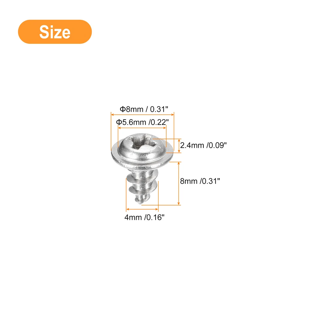 Document Good Material: Made from premium 304 stainless steel, these Phillips pan head self-tapping screws with washers exhibit excellent material characteristics. The stainless steel construction provides superior strength and corrosion resistance, making them suitable for various applications. Their durable nature ensures long-lasting performance, even in challenging environments.Sleek Design: Featuring a sleek and compact design, these screws offer an aesthetically pleasing appearance. The Phillips pan head design adds a decorative touch while providing easy installation and efficient fastening. The introduction of washers enhances the overall functionality and stability of the screws when used on different materials and surfaces.Easy to Use: With their self-tapping capabilities, these screws are easy to install. Simply use a Phillips screwdriver to drive the screw into the material, eliminating the need for pre-drilling. This saves time and effort during assembly or repair tasks, making them suitable for both professionals and DIY enthusiasts.Application: These wood screws have a wide range of applications. From woodworking projects to furniture assembly, they are suitable for securing various materials, including wood, plastic, and metal. Whether you are building cabinets, constructing shelves, or working on home improvement projects, these versatile screws provide reliable and secure fastening solutions.Specification:Material: 304 Stainless SteelScrew Groove Type: PhillipsScrew Length:8mm / 0.31”Thread Diameter:4mm / 0.16”Head Diameter:5.6mm / 0.22”Washer Diameter:8mm / 0.31”Head Thickness:2.4mm / 0.09”Package Content:100pcs x Phillips Pan Head Self-tapping Screw with Washer ST4x8x8mm Phillips Pan Head Self-tapping Screw with Washer, 100pcs (Silver) Good Material: Made from premium 304 stainless steel, these Phillips pan head self-tapping screws with washers exhibit excellent material characteristics. The stainless steel construction provides superior strength and corrosion resistance, making them suitable for various applications. Their durable nature ensures long-lasting performance, even in challenging environments. Sleek Design: Featuring a sleek and compact design, these screws offer an aesthetically pleasing appearance. The Phillips pan head design adds a decorative touch while providing easy installation and efficient fastening. The introduction of washers enhances the overall functionality and stability of the screws when used on different materials and surfaces. Easy to Use: With their self-tapping capabilities, these screws are easy to install. Simply use a Phillips screwdriver to drive the screw into the material, eliminating the need for pre-drilling. This saves time and effort during assembly or repair tasks, making them suitable for both professionals and DIY enthusiasts. Application: These wood screws have a wide range of applications. From woodworking projects to furniture assembly, they are suitable for securing various materials, including wood, plastic, and metal. Whether you are building cabinets, constructing shelves, or working on home improvement projects, these versatile screws provide reliable and secure fastening solutions. Specification: Material: 304 Stainless Steel Screw Groove Type: Phillips Screw Length:8mm / 0.31” Thread Diameter:4mm / 0.16” Head Diameter:5.6mm / 0.22” Washer Diameter:8mm / 0.31” Head Thickness:2.4mm / 0.09” Package Content:100pcs x Phillips Pan Head Self-tapping Screw with Washer Hot Item Payment 1.We accept eBay payment . 2.Payment must be received within 7 business days of auction closing. Shipping 1.We ship to your eBay or Paypal address. Please make sure your eBay and Paypal address is correct before you pay. 2.Items will be shipped within 1-3 business day when we received payment. 3.Delivery time depends on destination and other factors. Description Policy ST4x8x8mm Phillips Pan Head Self-tapping Screw with Washer, 100pcs (Silver) Good Material: Made from premium 304 stainless steel, these Phillips pan head self-tapping screws with washers exhibit excellent material characteristics. The stainless steel construction provides superior strength and corrosion resistance, making them suitable for various applications. Their durable nature ensures long-lasting performance, even in challenging environments. Sleek Design: Featuring a sleek and compact design, these screws offer an aesthetically pleasing appearance. The Phillips pan head design adds a decorative touch while providing easy installation and efficient fastening. The introduction of washers enhances the overall functionality and stability of the screws when used on different materials and surfaces. Easy to Use: With their self-tapping capabilities, these screws are easy to install. Simply use a Phillips screwdriver to drive the screw into the material, eliminating the need for pre-drilling. This saves time and effort during assembly or repair tasks, making them suitable for both professionals and DIY enthusiasts. Application: These wood screws have a wide range of applications. From woodworking projects to furniture assembly, they are suitable for securing various materials, including wood, plastic, and metal. Whether you are building cabinets, constructing shelves, or working on home improvement projects, these versatile screws provide reliable and secure fastening solutions. Specification: Material: 304 Stainless Steel Screw Groove Type: Phillips Screw Length:8mm / 0.31” Thread Diameter:4mm / 0.16” Head Diameter:5.6mm / 0.22” Washer Diameter:8mm / 0.31” Head Thickness:2.4mm / 0.09” Package Content:100pcs x Phillips Pan Head Self-tapping Screw with Washer Hot Item Payment 1.We accept eBay payment . 2.Payment must be received within 7 business days of auction closing. Shipping 1.We ship to your eBay or Paypal address. Please make sure your eBay and Paypal address is correct before you pay. 2.Items will be shipped within 1-3 business day when we