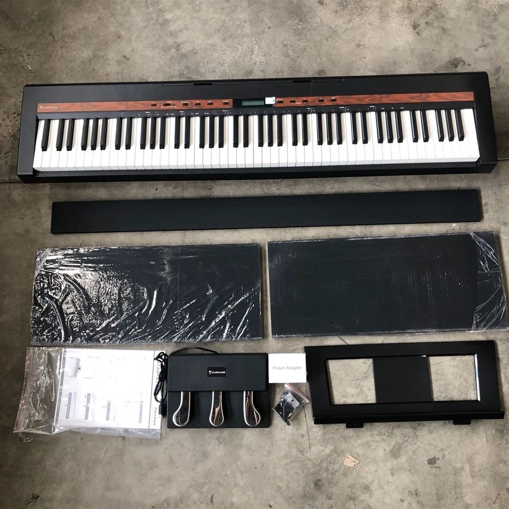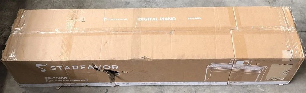 STARFAVOR SP-150W DIGITAL PIANO 88 WEIGHTED KEY KEYBOARD PIANO W STAND/PEDALS You are bidding on ONE BRAND NEW STARFAVOR SP-150W DIGITAL PIANO 88 WEIGHTED KEY KEYBOARD PIANO WITH STAND AND TRIPLE PEDAL. This is a brand new, never used digital piano. The original box was slightly distressed in original transit, but the contents including keyboard and all accessories were unharmed and in new, perfect condition. It was tested and everything works great! These are normlly $400-450 new if you choose the stand and triple pedal option. It comes with everything shown. This is your chance to save big-time so don't miss out!! PLEASE READ EVERYTHING IN THE LISTING DESCRIPTION PRIOR TO BIDDING. ITEMS COME AS SHOWN IN THE PHOTOS WITH ONLY WHAT SHOWN. WE DO NOT SHIP OUTSIDE THE USA/CANADA. IF YOU LIVE OUTSIDE THE USA/CANADA AND DO NOT HAVE A CONFIRMED SHIPPING WITHIN THE US THEN WE CAN NOT SHIP TO YOU! YOU MIGHT LOOK INTO FINDING A MAIL FORWARDING PROVIDER IN THE USA AND GETTING THEIR ADDRESS ADDED AND CONFIRMED IN YOUR PAYPAL ACCOUNT! ALSO IF YOU LIVE IN CANADA UNDERSTAND THAT DUTIES AND CUSTOMS TAXES ARE COLLECTED PRIOR TO DELIVERY AND WE DON'T EVER KNOW WHAT THOSE RATES ARE OR HAVE ANY CONTROL OVER THEM AT ALL. KEEP IN MIND IF BIDDING IN CANADA YOU WILL END UP HAVING TO PAY THESE. WE'VE DISCOVERED THAT THOSE WANTING SO SAVE MONEY ON THESE FEES CAN SELF-BROKER PACKAGES LOWERING THEM SIGINIFICANTLY. YOU CAN DO A WEB SEARCH FOR DETAILS ON THIS. PLEASE NOTE THE USE OF THE UPS SHIPPING CALCULATOR UNDER THE SHIPPING TAB. THIS USES THE UPS SITE TO CALCULATE EXACT SHIPPING AMOUNTS. WE DO NOT SHIP OUTSIDE THE US/CANADA (IF YOU LIVE IN CANADA THERE IS A DROP DOWN MENU TO SWITCH THE DESTINATION FROM USA TO CANADA). PLEASE UNDERSTAND THAT THESE ARE THE ACTUAL SHIPPING PRICES PER UPS THAT WE CAN'T CONTROL. WE DO OUR BEST TO PRICE ITEMS COMPETITIVELY ENOUGH THAT THE INCREASED SHIPPING AMOUNTS DON'T MATTER BUT WE WANT YOU TO BE HAPPY WITH EVERY ASPECT OF THE SALE. PLEASE E-MAIL US IF YOU HAVE QUESTIONS PRIOR TO BIDDING SO THERE'S NO CONFUSION Powered by SixBit's eCommerce Solution