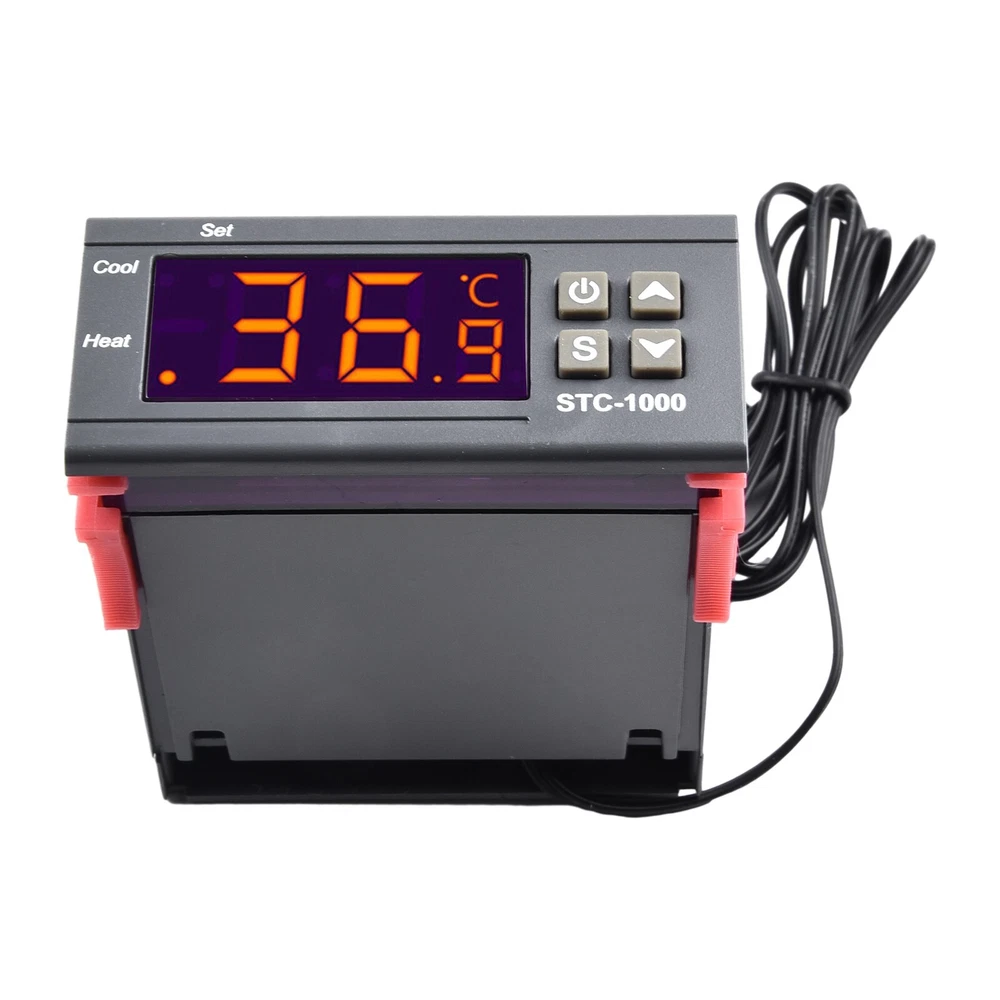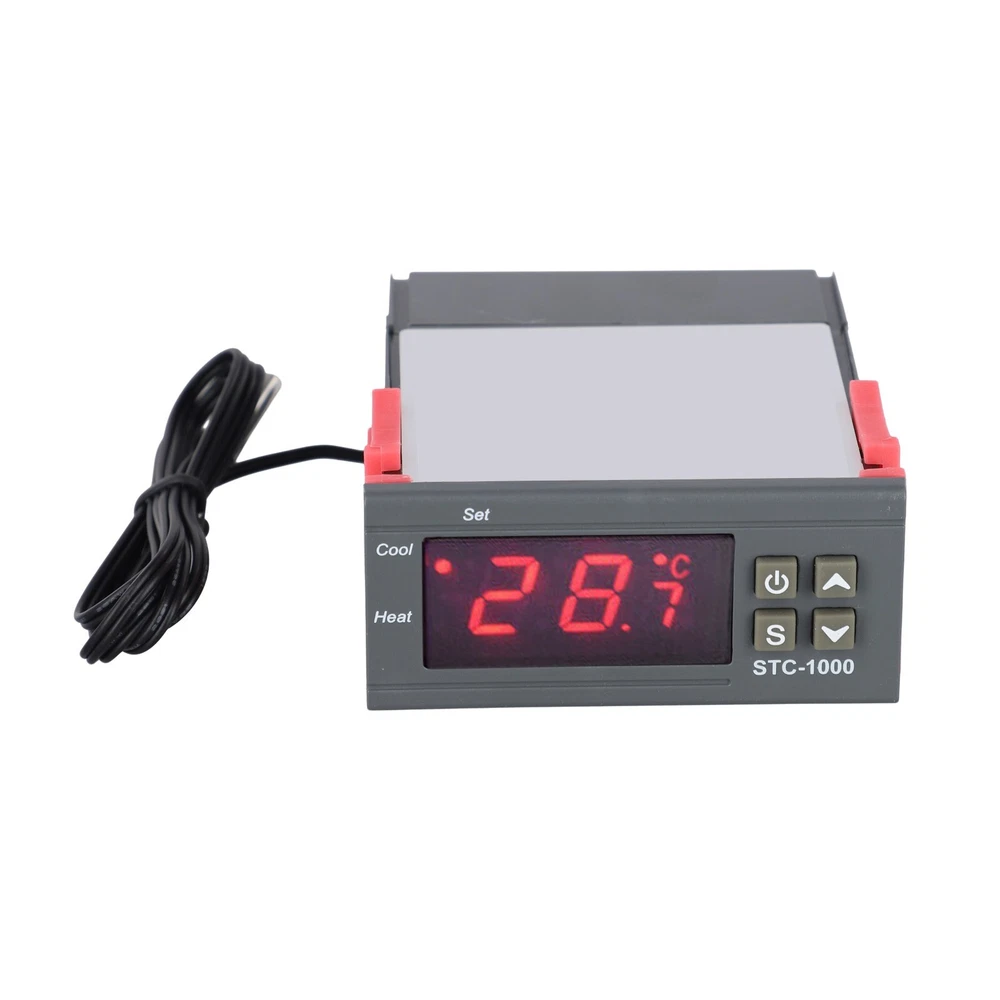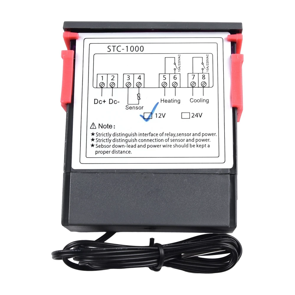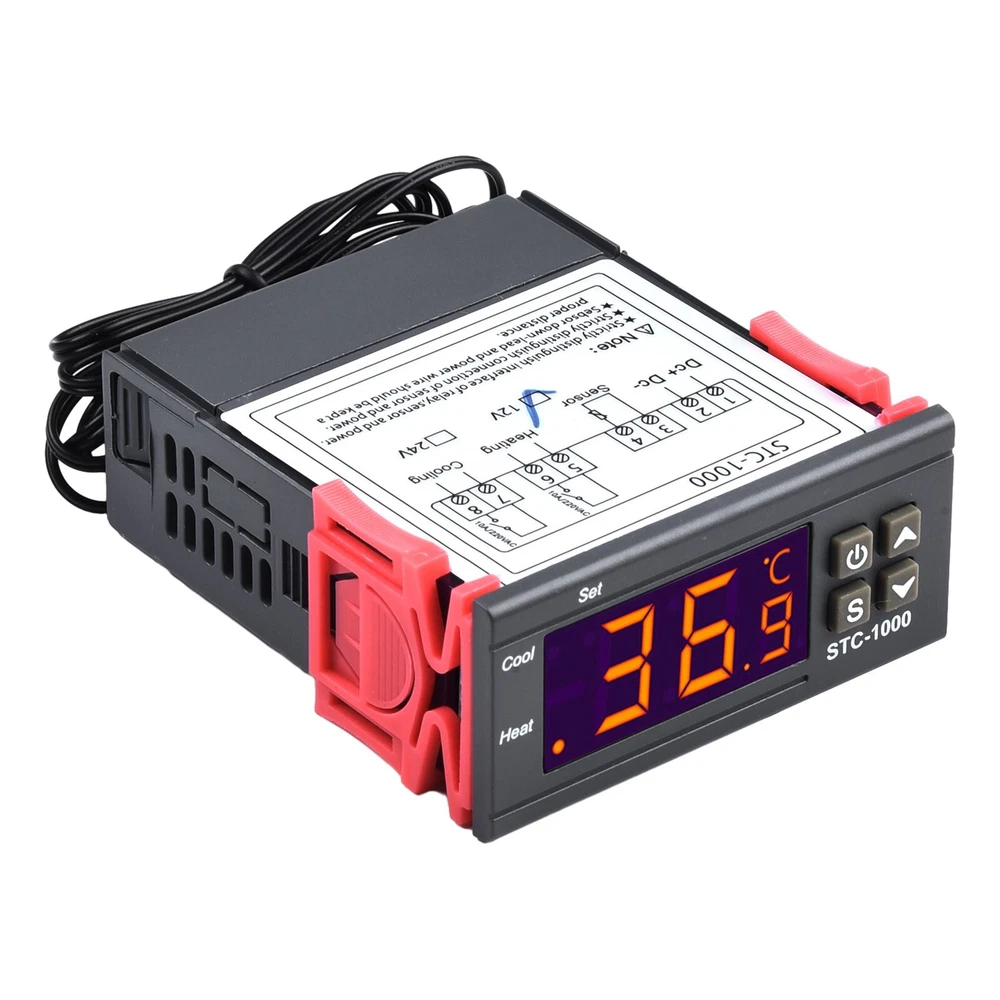 STC1000 Digital Thermostat with Sleek Front Panel Space saving Solution DESCRIPTION Features: *Temperature control, temperature setting and temperature differential control, temperature calibration, temperature controller has a selectable voltage option, allowing you to choose 110-220V AC 50/60Hz or 12V/24V, providing maximum flexibility for your specific needs *Our temperature controllers can measure temperatures from -50°C to +99°C with a resolution of up to 0.°C. With exceptional accuracy of +- °C from -50°C to +70°C, you can be confident in its reliability and accuracy. *This temperature controller consumes less than 3W, allowing you to save energy without compromising performance. The sensor type used is , which ensures accurate temperature measurement every time. With two relays capable of handling cooling and heating currents up to 10A/220VAC. *The temperature controller is convenient and able to withstand various operating conditions. With an operating temperature range of 0°C to +60°C and a storage temperature range of -30°C to +75°C, the controller is suitable for use in a variety of environments. With a relative humidity range of 20% to 85% (non-condensing), you can trust it to perform reliably in most conditions. * meter long, 4mm diameter sensor provides installation flexibility and ensures accurate readings. The sleek front panel measures 75 x 34.5mm and the overall product dimensions are 75 x 34.5 x 85mm, making it compact and easy to integrate into your setup. Mounting dimensions are 71 x 29mm, a seamless fit into your existing . Specification: *Model: 110-220V AC 50/60Hz, 12VDC, 24VDC (optional) *Temperature range: -50°C ~ +99°C *Temperature: 0,°C *Normal temperature: +-°C (-50°C ~ +70°C) *Sensor measurement: minute *Durability: <3W *Sensor type: *Operating temperature: 0°C ~ +60°C *Storage temperature: -30°C ~ +75°C *Relative flying ability: 20% ~ 85% *Sensor distance: 1m *Sensor size: 4mm *Front panel size: 75 x 34.5mm *Product Dimensions: 75 x 34.5 x 85 mm *F1 - Temperature - -50 ~ +99,9°C - 10°C *F2 - Differential - 0,3 ~ 10,0°C - 0,5°C *F3 - - ~ 10 minutes - 3 minutes *F4 - Temperature calibration range - -10°C ~ +10°C - 0°C Package Included: 1X temperature controller Notes: . Due to various factors such as display brightness and light brightness, the actual color of the product may be slightly different from the website picture. 2. Please allow a slight deviation between the data and the manual measurement. POLICES Shipping Payment WARRANTY We only ship to confirmed ebay Order addresses. Please comfirm that your Order address is in line with your shipping address. Please kindly note that the c ombined shipping is not provided because the shipping fee is calculated by weight. Also, the each additional item means exactly the the same color and size. It takes about 7 -15 working days to US; about 10-30 working days to other countries. Transit time may be a little delayed because of the bad weather and customs inspection . If you do not receive your item within 30 working days since payment finished, please contact us immediately for further assistance. Payment must be completed within 5 days. If you have any problems about payment, please contact us via ebay message. We strive for 100% customer satisfaction! Positive Feedback is very important to us. If you have any questions, p lease feel free to contact us via "Ask seller a question" . We will reply your email within 24 working hours.