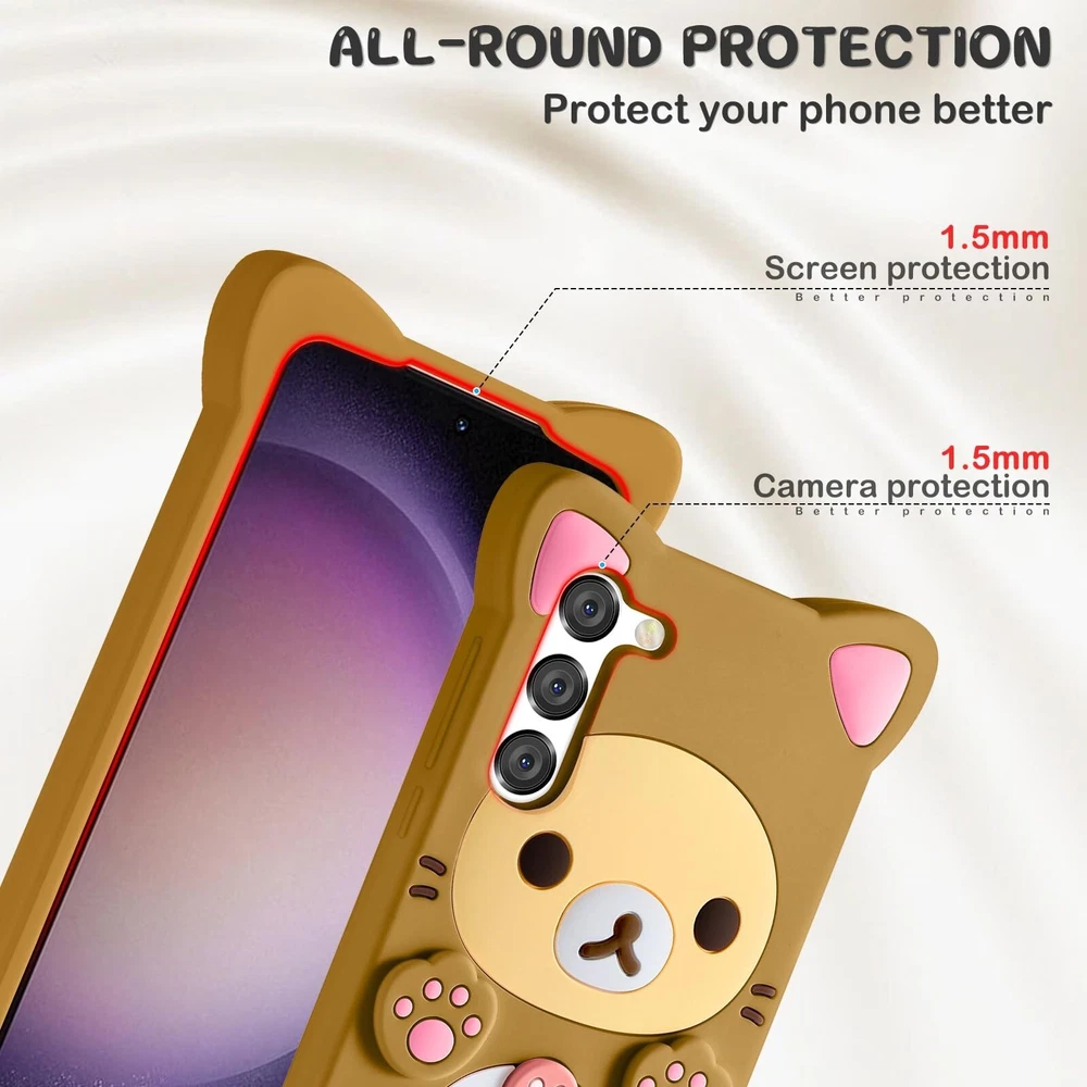 STSNano Kawaii for Samsung Galaxy S23 Case 3D Cute Cartoon Bear Phone Cases Fashion Cool Fun Funny Bear Soft TPU Covers for Samsung S 23 6.1" Silicone Cover for Women Girls Kids Brown Product Details Color: Brown Size: for Samsung Galaxy S23 Brand: STSNano MPN: 001 UPC: Does not apply EAN: Does not apply Brand: STSNano Compatible Phone Models: Samsung Galaxy S23 Color: Brown Compatible Devices: Samsung Galaxy S23 Material: Silicone Package Dimensions: 6.54 x 4.53 x 0.55 inches Item Weight: 1.76 ounces Item model number: 001 Special features: Slim Fit Other display features: Wireless Form Factor: Basic Case Color: Brown Whats in the box: phone case Manufacturer: STSNano Country of Origin: China Date First Available: August 4, 2023 CUTE CARTOON BEAR DESIGNThis super creative 3D cartoon bear case for Samsung Galaxy S23 5G design makes your phone creative, novel, fashionable and interesting. SHOCK & DROP RESISTANTThe for Samsung Galaxy S23 5G pink bear phone case make of high-quality soft silicone and has a medium hardness, making the case easy to hold and not slippery. Provides an effective cushion when your device accidentally dropped, protect your phone all over. CONVENIENTThe cute bear phone case for Galaxy S 23 5G does not affect the daily use, it can be charged without removing the phone, and it is sweat-proof and fingerprint-proof. BEST GIFTS CHOICEThe super cool 3D cartoon bear mobile phone case for Samsung S23 5G is especially suitable as a birthday gifts, mothers day gifts to all girls or women, like your mother, girl friend, daughter an so on.