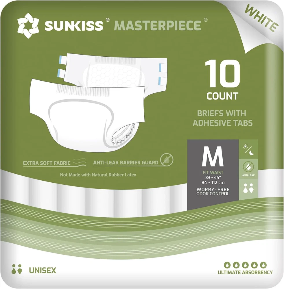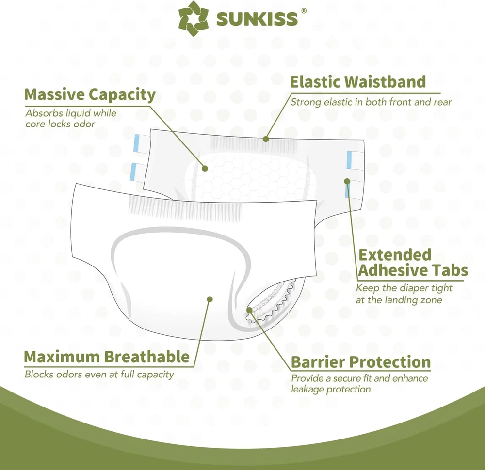 Fast Shipping Great Customer Support Satisfaction Guaranteed DESCRIPTION Shipping Shipping Shipping All domestic packages are shipped for Free (Unless other shipping method was selected during the checkout) Most items ship and arrive much sooner than the estimate delivery date. Usually within 2-3 days from payment. However, we have longer estimates to compensate for the occasional delay or supply chain breakdown. We do not accept P.O. BOXES - PLEASE PROVIDE A PHYSICAL ADDRESS Return Return Return In the event that you would like to return your purchase, we allow returns that are processed within the defined return date (the return date is to be found in the return policy/shipping and handling section) Please contact us for a return authorization and the return shipping address. Payment Payment Payment PayPal is our preferred method of payments it's the quickest, easiest and most secure way to pay for your goods or services online. PayPal offers buyer and seller protection should there be a problem. If you do not have a PayPal account, to get started and buy your first item with us is very easy. Simply click on the 'Buy It Now' button and follow the eBay checkout steps. Select PayPal as the payment method you then will be given the chance to enter your card details in to PayPal's secure checkout in order to pay for your order. Once the payment has been made, you will then be given the opportunity to make your own PayPal account to make paying for your items in the future very easy. Should there be a problem with payment please do let us know. Feedback Feedback Feedback Customer satisfaction is very important to us. If you have any problem with your order,please contact us and we will do our best to make you satisfied, please do not leave a negative feedback before we resolve your problem. We guarantee that your issue will be solved quickly. As long as you are happy with your purchase of , please leave us a positive feedback. Your feedback is very important to us it affects our search placement on eBay. We will leave a positive feedback for you in return automatically once we receive your feedback. Contact Us Contact Us Contact Us If you have any queries, please contact us via ebay. We usually respond within 24 hours on weekdays. Thank you for visiting our ebay store! HEAVY ABSORBENCY. SUNKISS incontinence brief boasts a heavy absorbency and features quick drying capabilities. Our diapers with special fibers can wick away moisture incredibly fast. The extra-large core provides maximum coverage in the front and rear, even for side sleepers. EXTRA SOFT. Our unisex incontinence diapers are made of extra soft hydrophilic non-woven fabric which can provide you with a soft and comfortable feeling and strong sense of wrapping, making you feel safe and secure. When you rub your legs, you can also hear the pleasant rustling sound. IMPROVED FIT. Unique right-sized briefs fit a wider range of body shapes to prevent leakage more effectively. Strong elastic in front and rear waistbands provides a close fit around the waist. Don’t miss our cute yet functional diaper with superior comfort. LEAK PROTECTION. Our briefs with two extra wide adhesive tape tabs on each side are refastenable on the full frontal landing zone to hold firm even at full capacity. Interior leg gathers offer additional leakage barrier protection, provide discreet and garment-like natural feel. ODOR CONTROL. SUNKISS adult diapers with maximum absorbency for men and women, is made of super absorbent polymer core which can lock in fluid and unpleasant odor. Smooth poly-plastic exterior resists sagging and blocks odors even when at full capacity. SUNKISS Adult Diapers Unisex, Disposable Incontinence Briefs, 10 Count Click here to see description Fast Shipping Great Customer Support Satisfaction Guaranteed DESCRIPTION Shipping All domestic packages are shipped for Free (Unless other shipping method was selected during the checkout) We ship within two business days of payment, usually sooner Standard FREE shipping takes between 3-5 business days Expedited shipping takes between 2-3 business days Overnight shipping takes between 1-2 business days We do not accept P.O. BOXES - PLEASE PROVIDE A PHYSICAL ADDRESS We Ship Globally using ebay's GSP, the item is sent to a logistic center in KY and shipped from there to the rest of the world. International customers are responsible for all duties and taxes Contact your local authority for questions related to the amount of duties or taxes you will be responsible for Return In the event that you would like to return your purchase, we allow returns that are processed within the defined return date (the return date is to be found in the return policy/shipping and handling section) Please contact us for a return authorization and the return shipping address. Please contact us for a Return Merchandise Authorization (RMA) number. We advise you to use a reputable carrier service when returning your goods. Please pack all returns appropriately. We ship globally Via eBay's global shipping program (GSP). Thus we don't cover returns for items shipped globally. Buyers returning such items will be refunded ONLY for the item's cost and not for the shipping. please check the Voltage information and make sure it matches the one in your country. In case it's not stated in the description, do ask us. Payment PayPal is our preferred method of payments it's the quickest, easiest and most secure way to pay for your goods or services online. PayPal offers buyer and seller protection should there be a problem. If you do not have a PayPal account, to get started and buy your first item with us is very easy. Simply click on the 'Buy It Now' button and follow the eBay checkout steps. Select PayPal as the payment method you then will be given the chance to enter your card details in to PayPal's secure checkout in order to pay for your order. Once the payment has been made, you will then be given the opportunity to make you