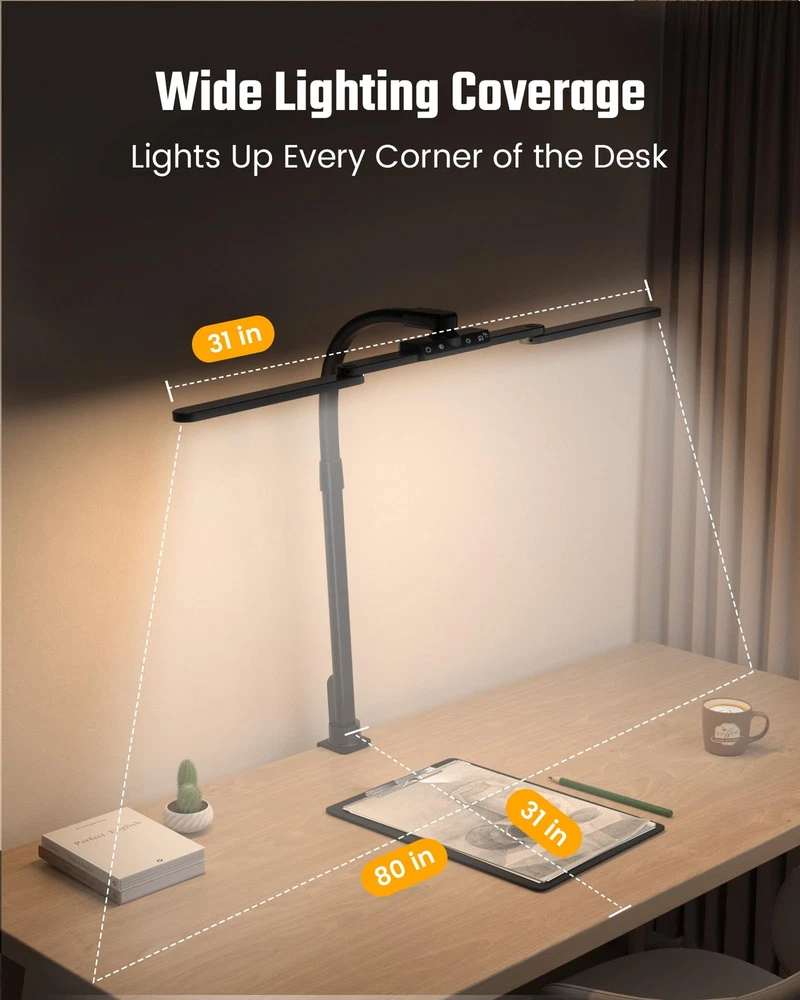 SUPERDANNY LED Desk Lamp for Home Office with USB Charing Ports Gooseneck Architect Clamp-on Desk Lamp with 5 Light Colors Smooth Dimming Touch and Hand-Wave Control for Reading, Crafting,Gaming