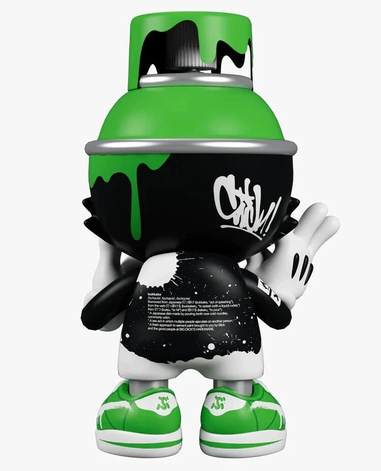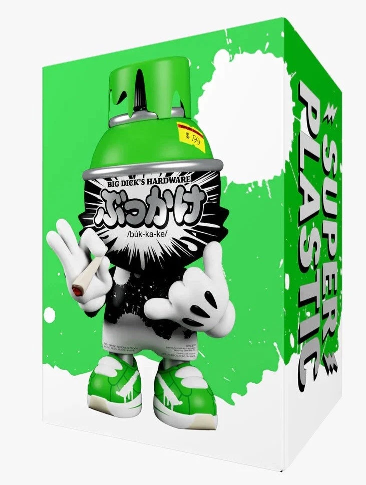 8-INCH Pakalolo Green is the highest edition of the five-part toy series created by legendary LA graffiti artist OG Slick. This limited edition piece comes finished in Superplastic soft vinyl, featuring Slick’s signature hands holding a joint and a cap revealing an electroplated silver chrome spray nozzle. Shake to hear the real rattle sound. Limited to 888 made.