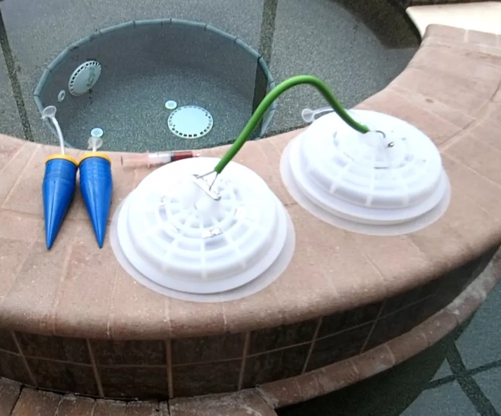 This listing is for 1 single bottom drain cover with 6 lead weights and a 6 meter clear hose. The listing does not include the pool pole. This is one piece silicone cover is custom designed to test bottom drains for leaks from the deck without removing the cover. The long tube is statically dye tested indicating a leak. Watch our videos on youtube for more info. If you would like to test pairs of bottom drains then order 2 covers and one cover will have a clear hose and the other will include a 2' wire handle to daisy chain the 2 together for testing spa drains. We have also discontinued the clear curly hose with a straight clear hose that has less drag on the dye.