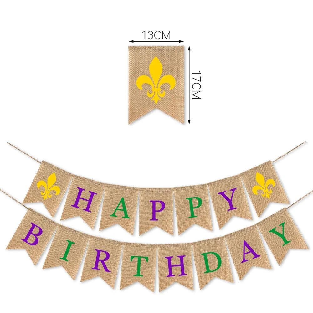 SWYOUN Burlap Happy Birthday Banner Mardi Gras Birthday Party Bunting Garland Supplies Material: 100% natural burlap. Durable and reusable. No diy required: the burlap banner is pre-assembled with adjustable long rope, save your time to decorate party, and the interval space of these burlap can be adjusted as you like. Great for Mardi Gras Birthday Party decoration. And also can be used as photo booth backdrop. PACKAGE INCLUDE:One set with"Happy Birthday" banner. Material: 100% natural burlap. Durable and reusable. No diy required: the burlap banner is pre-assembled with adjustable long rope, save your time to decorate party, and the interval space of these burlap can be adjusted as you like. Great for Mardi Gras Birthday Party decoration. And also can be used as photo booth backdrop. PACKAGE INCLUDE:One set with"Happy Birthday" banner. Shipping from the USA All of our products are shipped from the USA, ensuring quick delivery to your destination. Payment We offer the following payment methods: PayPal, credit card, bank transfer, and eBay's secure payment system. Free Shipping & Free Returns Shipping within the USA is FREE. Additionally, any return is absolutely free for you. Risk-Free Purchase You have the option to return an item within 30 days without any justification. We cover the return shipping costs! Fast Shipping We ship immediately upon receipt of payment. Generally, the package is delivered within 2-3 days in the USA. If it takes longer, we will contact you. Quality and Costs Made in Europe, USA, China No customs fees or additional charges Total satisfaction guarantee Invoice with declared VAT available upon request in .pdf format Feedback Your feedback is very important to us. After you pay for your purchase, you will automatically receive positive feedback from us.