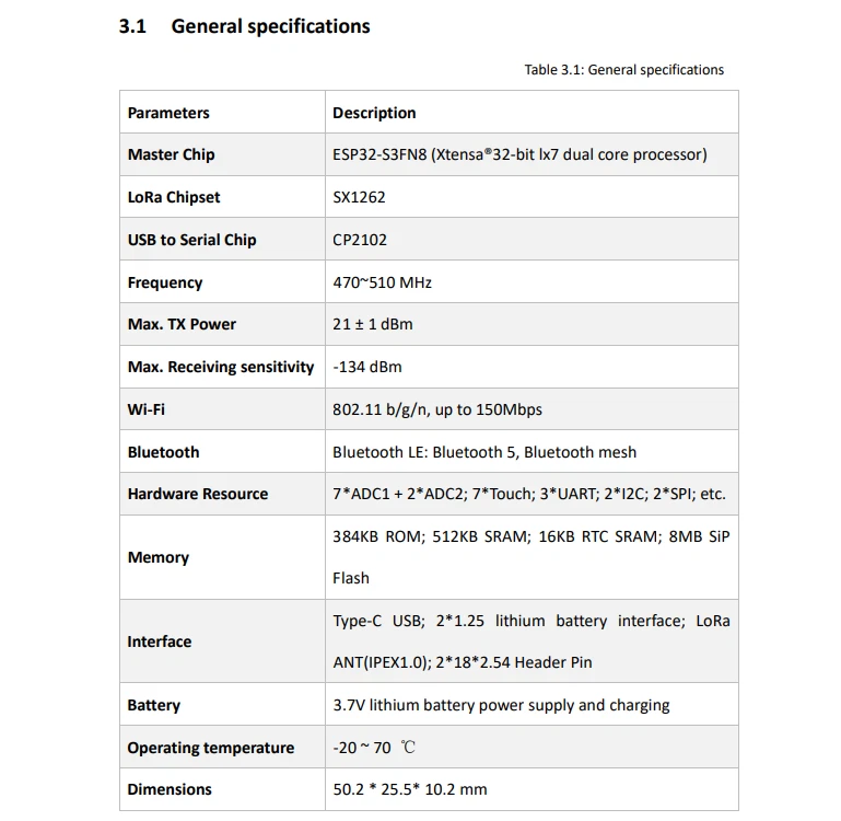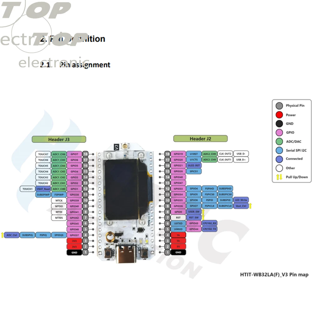 Store Categories Store Categories eBay Motor Fashion Books, Movies & Music Electronics Collectibles & Art Home & Garden Sporting Goods Toys & Hobbies Business & Industrial Health & Beauty Other Detail 1. Description 1.1 Overview WiFi LoRa 32 is a classic IoT dev-board designed & produced by Heltec Automation. Since its launch in 2017, it has been loved by developers and makers. The newly launched V3 version has the same pin sequence as the V2 version, and retains Wi-Fi, BLE, LoRa, OLED display and other functions. On this basis, the V3 version has been 1.2 Product features ➢ Microprocessor: ESP32-S3FN8 (Xtensa® 32-bit LX7 dual core processor, five stage pipeline rack Structure, main frequency up to 240 MHz). ➢ SX1262 LoRa node chip. ➢ Type-C USB interface with a complete voltage regulator, ESD protection, short circuit protection, RF shielding, and other protection measures. ➢ Onboard SH1.25-2 battery interface, integrated lithium battery management system (charge and discharge management, overcharge protection, battery power detection, USB / battery power automatic switching). ➢ Integrated WiFi, LoRa, Bluetooth three network connections, onboard Wi-Fi, Bluetooth dedicated 2.4GHz metal spring antenna, reserved IPEX (U.FL) interface for LoRa use. ➢ Onboard 0.96-inch 128*64 dot matrix OLED display, which can be used to display debugging information, battery power, and other information. ➢ Integrated CP2102 USB to serial port chip, convenient for program downloading, debugging information printing. ➢ Support the Arduino development environment. ➢ We provide ESP32 + LoRaWAN protocol Arduino® library, this is a standard Feedback Payment Shipment About us Feedback We appreciate positive feedback . we always try our best to service our customers . so if you have ant question ,PLEASE DON’T HESITATE TO TELL US, we are always here to offer help . Payment We prefer PayPal .For purchasing multiple items , please contact us for a combined invoice . generally we would like to receive payment thin 48 hours if . Shipment We provide airmail service with good package . The items will be shipped within the nest 2 business days after we received the payment . when you buy multiple items ,your shipping cost will be combined with discount . SHIPPING TIME (weekends/holidays excluded) Country Name Shipping Time Country Name Shipping Time USA/Canada 10 -15d Spanish/Portugue 10-25d East/South Asia 10 -15d France/West Asia 10-25d United Kingdom 10 -20d Italy 10-30d Australia/New Zealand 10 -15d West Asia/Middle East 15-25d Most Country of West/North Europe 10-20d South America and Africa 15-30d East /Middle Europe/Russia 10-25d About us NEW, GOOD QUALITY, ORIGINAL PACKAGE LARGE STORE AND THE LOWEST PRICE NO-QUESTION-REFUND, FOR LARGE QUANTITY ,OFFER BETTER PRICE, ORIGINAL PACKING(TAPE REEL/TUBE/TRAY) We specialize in electronic components . ICs, Capacitors, Diodes, Resistors, LEDs, Transistors, and so on. Especially in Hard To Find Parts . we only sell NEW , ORIGINAL parts . please buy with confidence .We offer NO-QUESTION-REFUND go to my store On May 24, 2023 at 19:24:38 PDT, seller added the following information: On May 24, 2023 at 23:01:40 PDT, seller added the following information: On Apr 2, 2024 at 05:11:33 PDT, seller added the following information: