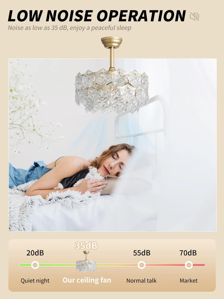 Absolutely love this fan—it’s a stunning mix of modern elegance and function! The gold and crystal combo brings a glamorous mid-century vibe to my living room, and it actually cools the space well. The light adds a warm, dreamy glow, perfect for relaxing. Installation was smooth, but customer support was ready to help if needed (thankfully, no issues!). Super impressed with how it elevates my decor while being practical. Would 100% recommend!