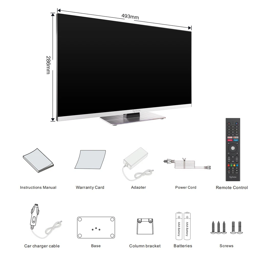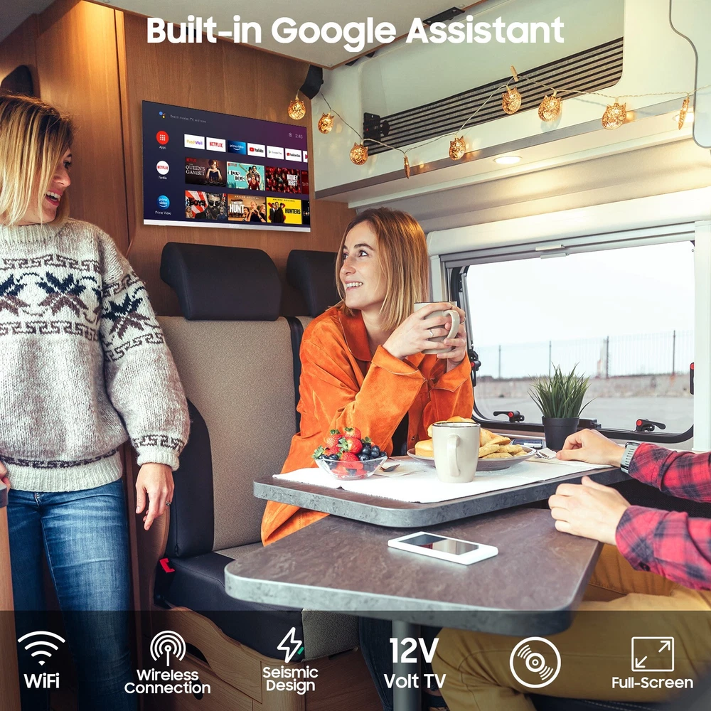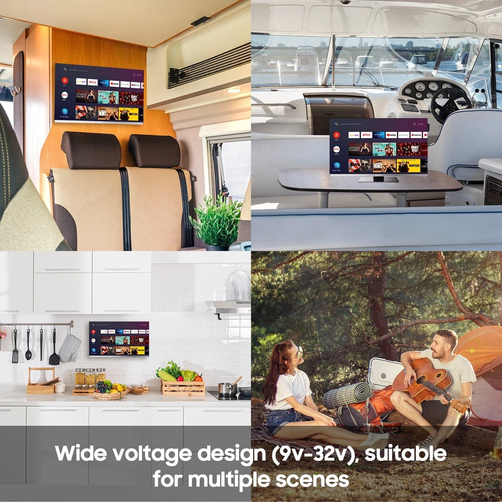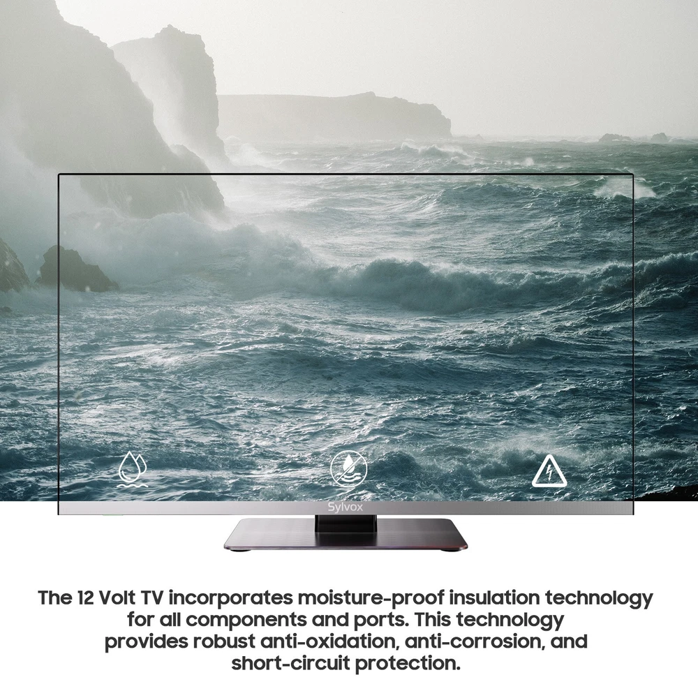 SYLVOX 12 Volt TV 22" Smart TV with DVD Player Built in 1080P Android TV smart TV: SYLVOX 12V TV built-in Google play, voice assistant, Android 11.0. Download your favorite apps, enjoy 700,000+ movies and TV shows for a smarter, more pleasurable life. Specialty TV: Unlike the past, this portable TV incorporates SYLVOX's exclusive moisture-proof insulation technology for all components and ports. This technology provides robust anti-oxidation, anti-corrosion, and short-circuit protection. Digital Video Disc Combo: Enjoy the convenience of Android TV with a built-in player, supporting DVD/VCD/CD discs and compatible with most regions. Plus, utilize the TV port for seamless transfer of audio and video files. All-in-one entertainment at your fingertips. 12 Volt TV: This small TV supports DC 12/24V input, a wide voltage range of 9-32V, and ensures versatility with a moisture-proof design. Ideal for RVs, yachts, boats, and various environments. Comes with an AC 110V power adapter, making it equally fitting for home use. Adaptability meets convenience! 1080P FHD Marine TV: Frameless design for a 178° ultra-wide viewing angle, providing Full-Screen Enjoyment. Seismic Design ensures durability, passing the 4G vibration test to withstand bumps and vibrations for uninterrupted viewing pleasure. Sylvox Marine Moisture-Proof TV, gives you an extraordinary experience. SYLVOX Smart TV built-in Google Play, voice assistant, Android 11.0. Download your favorite apps, enjoy 700,000+ movies and TV shows for a smarter, more pleasurable life. Smart Display: Support mobile device screen casting, you can share the content from your phone on SYLVOX TV and play games with your family. With AC power adapter, support AC 110v-240v power input, suitable for living room, bedroom, children's room, game room, and kitchen. Unlike the past, this portable TV incorporates SYLVOX's exclusive moisture-proof insulation technology for all components and ports. This technology provides robust anti-oxidation, anti-corrosion, and short-circuit protection. Moisture Resistant Corrosion Resistant Shock Resistant Can be used in a variety of situations Specifications: Response Time (typical): 5ms Wireless Connection: 5.0 WiFi: Support 5G Ports: OPTICAL OUT*1, TV Tuner*2, LAN*1, CEC&ARC*2, Line (L/R) out*1, Earphone*1, USB*2 Note: New TV screens come with a protective film, please remove the TV film before using the TV. Satisfaction Service: Sylvox is a brand of united state company, please contact SYLVOX support center for any after-sales issues to ensure satisfactory service.