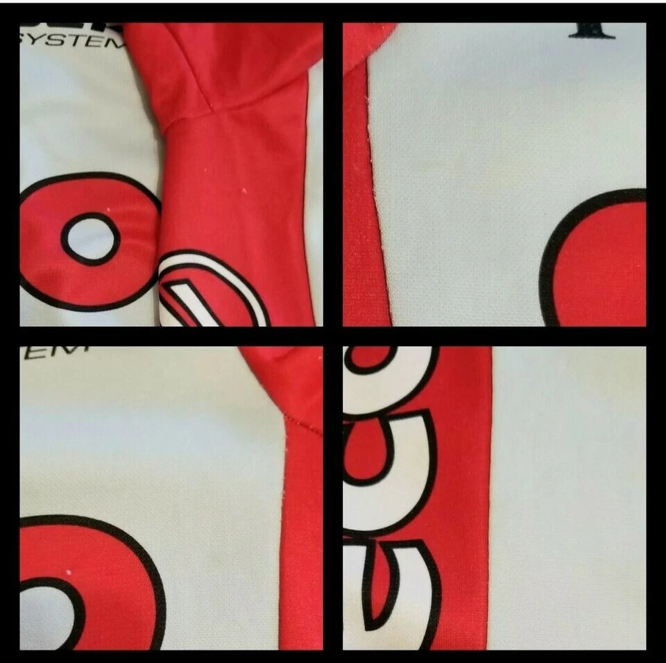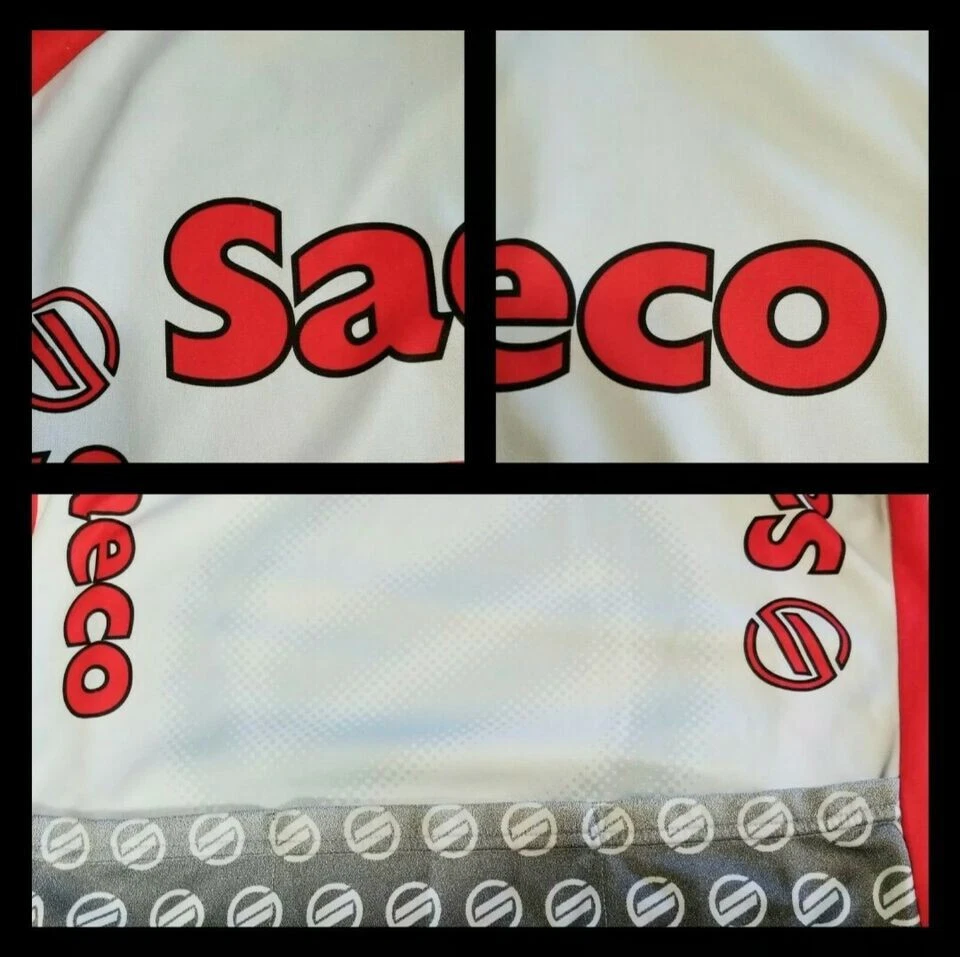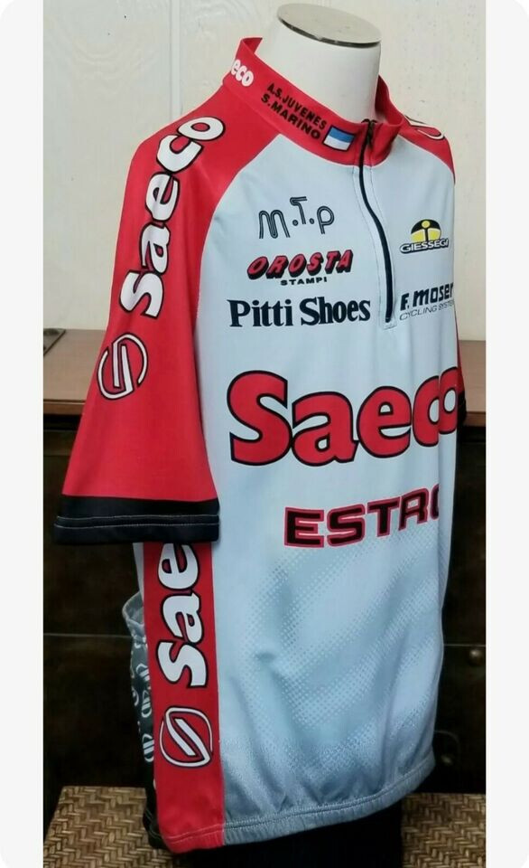 An Incredible one time opportunity to own this collector Saeco Team 2003 Cycling 1/4 Zip S/S Jersey Estro Giessegi Size (M 4) Chest 38-1/4" See last photos for zipper pull tab wear, tiny snag areas, small faint spots front and snag area at top of back pockets ***PIT TO PIT IS 19-1/8" ***VIEW ALL MEASUREMENT PHOTOS FOR PROPER FIT**** Explore the in depth photos showing every angle possible as if you have it in your hands. Thank you from all of us at DPACTIVEXPRESS ***Note 1: Display stands not included with all items unless specifically stated in the title. ****Note 2: DPACTIVEXPRESS carries a diverse collection of brands in this category, so we take a pit to pit measurement photo. ~~~~~~~ITEM IN THE LISTING PHOTOS IS THE ITEM YOU WILL RECEIVE~~~~~~~~~~~
