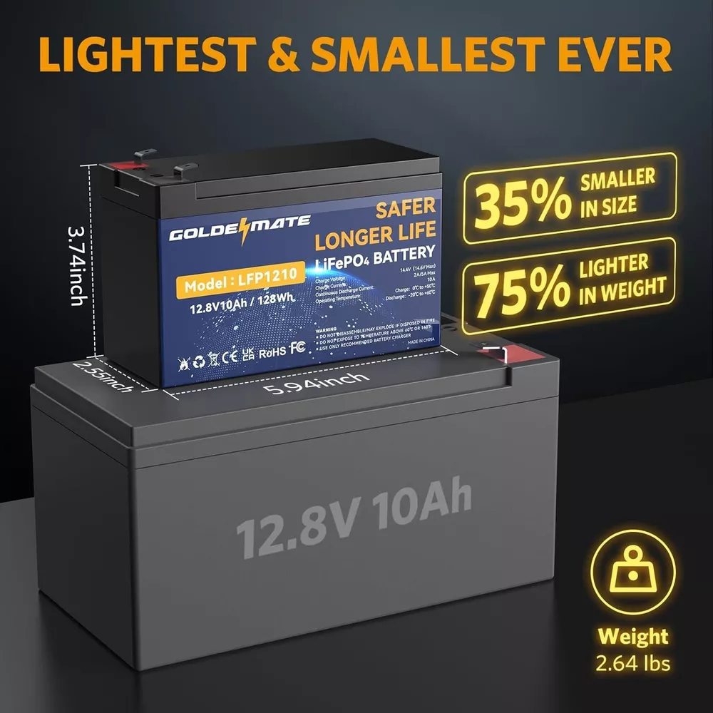 Safe & Lightweight 12V 10Ah Lithium Iron Phosphate Batteries for Critical Power ‹ › ‹ › ‹ › ‹ › ‹ › ‹ › ‹ › ‹ › ‹ › Safe & Lightweight 12V 10Ah Lithium Iron Phosphate Battery High-Capacity Power Reliable Performance: With a nominal voltage of 12.8V and a robust 10Ah capacity, our battery is perfect for high-demand applications such as solar-powered lights, electric tools, and fishing equipment. Dependable Usage: Get the performance you need, when you need it, ensuring that your adventures aren't interrupted. Long-Life Cycle Unmatched Longevity: Enjoy a remarkable lifespan of over 5000 cycles, far outlasting traditional lead-acid batteries. Cost-Effective: Ideal for solar lighting industries and portable electronics—an investment that pays off with years of reliable performance. Lightweight & Compact Design Dimensions: Approximately 5.9" x 2.5" x 3.7" and weighs only about 2.6 lbs., making it ultra-portable. Versatile Use: Fits seamlessly into a variety of devices, perfect for mobile lighting solutions, electric toys, and handheld vacuums. Low Self-Discharge Rate Stay Powered: Ultra-low self-discharge rate means your devices retain power for extended periods. Essential for Emergencies: An excellent choice for emergency LED lights, Bluetooth speakers, and other critical applications. Safe & Reliable Technology Engineered Safety: LiFePO4 technology minimizes risks compared to traditional lithium-ion batteries. Power-Demanding Activities: Ideal for electric spray applicators and high-power LED flashlights, ensuring safety without compromising performance. Why Choose Our 12V 10Ah Lithium Iron Phosphate Battery? If you're seeking a powerful, lightweight, and safe battery option, look no further. Our 12V 10Ah LiFePO4 battery delivers exceptional performance and reliability for a wide array of high-demand applications. With its long life cycle and low self-discharge rate, this battery is designed to keep your devices running smoothly for years to come. Elevate your power solution today with our Safe & Lightweight 12V 10Ah Lithium Iron Phosphate Battery - your reliable partner for all your power needs! Shipping Free & Fast Shipping - We offer free shipping to most of the USA with a normal delivery time of 3-7 days. However, due to the current situation, additional delivery time (up to 3 weeks) may be required for some items. Alternative Carriers - We may use alternative carriers (e.g. USPS, FedEx, UPS, etc.) to ensure your package arrives safely and on time. Due to the use of multiple carriers, we are unable to provide a tracking number automatically. Handling Time - Orders are processed and shipped within 1-2 business days of receiving cleared payment. Shipping Restrictions - Shipping to Alaska, Hawaii, Puerto Rico, Guam, and other US territories may incur shipping charges or delivery restrictions. Please contact us before ordering, or your order can be refunded/cancelled. State Restrictions - There may be restrictions based on your state of purchase. For example, certain items may not be shipped to California due to state regulations. Contact for Tracking Updates - If you require tracking updates or have any concerns about the delivery of your order, please feel free to contact us, and we will be happy to assist you. Return 30-Day Hassle-Free Returns - We want you to be completely satisfied with your purchase. If you are not, you can return the item within 30 days of receiving it for a full refund or exchange. Easy Return Process - To start a return, simply contact us and we will provide you with a prepaid return shipping label and detailed instructions. Restocking Fee - There are no restocking fees for returns. However, the buyer is responsible for return shipping costs if the return is not due to a seller's error. Refund Processing Time - Refunds will be processed within 5 business days of receiving the returned item in its original condition. Payment We accept all major credit cards, PayPal, and Apple Pay for your convenience. Your payment information is secure and encrypted to ensure a safe and seamless transaction. Please complete your payment within 3 days of purchase to avoid any delays in shipping. Feedback Your feedback is extremely important to us. We strive to provide the best products and customer service possible. If you are satisfied with your purchase, please take a moment to leave us a positive review. If you have any concerns or issues with your order, please contact us before leaving negative feedback. We are committed to resolving any problems and ensuring your satisfaction. Contact Us If you have any questions or concerns, please feel free to reach out to our customer support team. You can contact us through the eBay messaging system. We are available Monday to Friday, 9:00 am to 5:00 pm EST, and we will do our best to respond to your inquiry within 24 hours. Buy it now and enjoy a pleasant shopping experience! UPC: Not Set Unit Quantity: 2 Expiration Date: LiFePO4 Lithium Battery Application: High Drain Devices,Low Drain Devices,Solar/Wind Devices Brand: Unbranded Type: 12 V Block Chemical Composition: Lithium Amp Hours: 10 Ah Voltage: 12 V Battery Size: 12 V MPN: Not Set Unit Type: lb Country/Region of Manufacture: Not Set Manufacturer Warranty: Not Set
