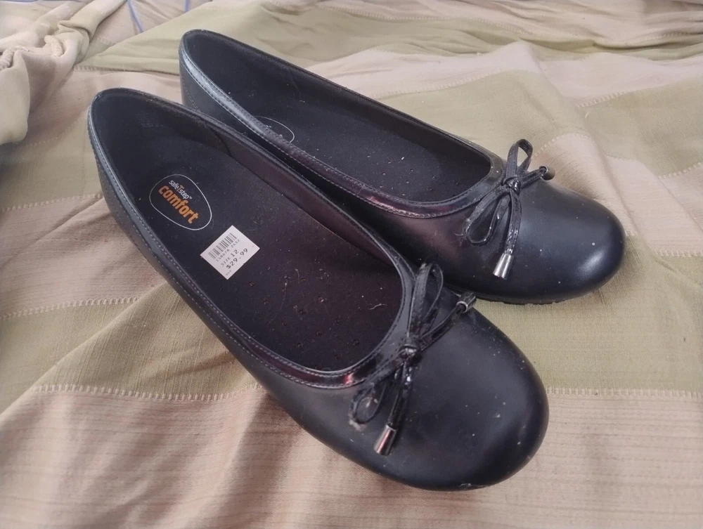 Crafted for versatility and comfort, the Safe T Step Samantha Women's Flats are a timeless addition to any wardrobe. Size 12 in a classic black hue, these shoes are a sophisticated choice for a range of occasions, from the office to evening events. The sleek leather upper material offers durability while the slip-resistant feature ensures stability on any surface.Whether you're dressing for casual outings, travel, or cocktails, these flats cater to both formal and informal settings with ease. The EU size 43 and UK size 10 equivalents ensure a comfortable fit for a variety of foot shapes. With their elegant style and practical design, these Safe T Step flats are a must-have for those who value function without compromising on fashion. The flats was only worn once or twice, but it has been sitting inside the storage room for a long time. Let me know if any questions before bidding or buying.