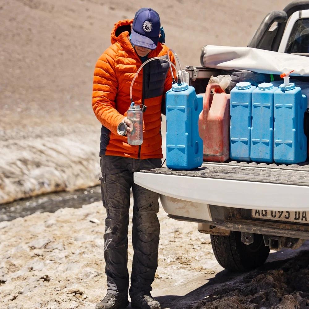 Ready Project Sagan Life AquaBrick Deluxe Emergency Water Purification System Features: 1 AquaBrick™ Water Purification System 1 XStream™ Survival Water Filter All necessary accessories for operation Product Details Ultimate Preparedness for Pure Water Anywhere Elevate your emergency and outdoor preparedness with the Sagan Life AquaBrick Deluxe Water Purification Kit. This premium kit combines the robust AquaBrick™ Water Purification System with the versatile XStream™ Survival Water Filter, providing unparalleled safety and convenience. Includes 1 AquaBrick™ Water Purification System 1 XStream™ Survival Water Filter All necessary accessories for operation Kit Item #1: Sagan Life AquaBrick™ Water Purification System Ensure safe drinking water in minutes with the AquaBrick™ System. It's capable of filtering and purifying up to 700 gallons with a simple air pressurized system. This high-performance purifier effectively eliminates 99.99999% of bacteria (like E.coli and salmonella), 99.9999% of all protozoa, and 99.99% of viruses, making it perfect for any crisis or outdoor adventure. This means you can drink from any non salt water source and obtain safe drinking water anywhere you go. Key Features: Portable and Lightweight: Includes 1 AquaBrick™ container, 1 DuraFlo™ Water Purification Filter, 1 hand pump, and 1 spigot, all weighing under 4 lbs. Multi-Use: Not only for emergency water filtration, but store up to 20 lbs of food in the durable, stackable container. Easy Setup: Simply fill, pressurize with the hand pump, and dispense clean water. Kit Item #2: XStream™ Survival Water Filter Straw with Hand Pump This ultra-lightweight survival water filter (6.2 oz) is essential for your disaster kit, offering a fast and effective way to purify water from any non-salt water source. It can purify up to 250 gallons, removing harmful pathogens using the same innovative filter technology used in the Aquabrick system. Key Features: High Flow Rate: No batteries or moving parts needed; just pump to get fresh water. Versatile Use: Comes with an XStream™ Spray Pump to wash hands or food with purified water, refill your water bottle, and share clean water effortlessly. Eco-Friendly: A single filter can replace 1,890 plastic bottles, significantly reducing your carbon footprint. Certified and Safe: Both filters are tested and certified, ensuring they meet stringent safety standards for removing viruses, bacteria, and protozoa. Sustainability and Safety: Made from BPA-free high-density polyethylene (HDPE) plastic, these containers ensure durability and safety for all your adventures and emergencies. Whether you're camping, boating, or preparing for an emergency, the Ready Project Portable Deluxe Emergency Water Purification Kit provides the assurance of clean, safe drinking water. Keep this essential kit in your car, home, or backpack to be ready for any situation.