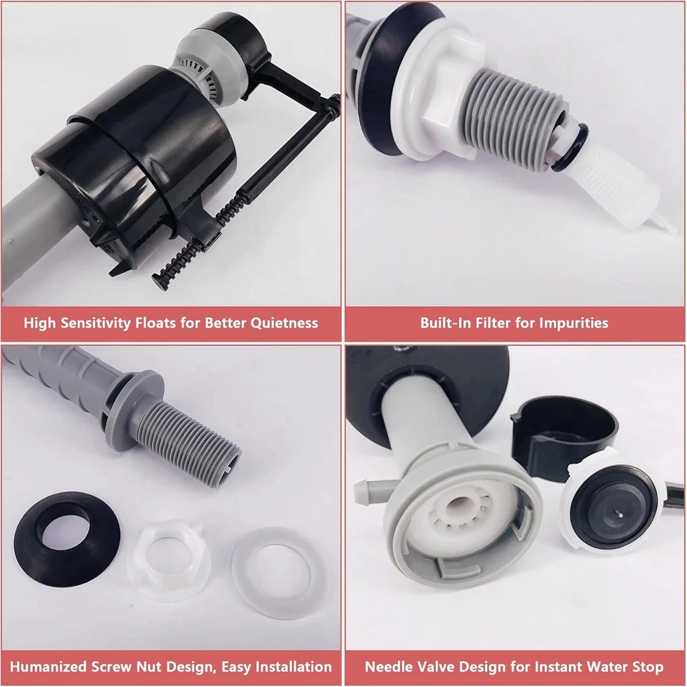 Saillong 3 Sets Toilet Float Replacement Kit, Universal Toilet Flusher Replacement Kit and 2 Inch Flapper Replacement, High-Performance Tank Water Control and Fill Valve Product Details Material: Plastic Brand: Saillong Item dimensions L x W x H: 4.25 x 2.76 x 13.98 inches Inlet Connection Size: 2 Inches Inlet Connection Type: Compression Outlet Connection Type: Compression Number of Ports: 2 Outlet Connection Size: 2 Inches Valve Type: Globe Valve Manufacturer: Saillong Part Number: Saillong-Replacement Kit-0456 Item Weight: 1.83 pounds Product Dimensions: 4.25 x 2.76 x 13.98 inches Country of Origin: China Item model number: Saillong-Replacement Kit-0456 Item Package Quantity: 3 Included Components: Toilet Flappers Batteries Required?: No Material: Plastic Brand: Saillong Item dimensions L x W x H: 4.25 x 2.76 x 13.98 inches Inlet Connection Size: 2 Inches Inlet Connection Type: Compression Outlet Connection Type: Compression Number of Ports: 2 Outlet Connection Size: 2 Inches Valve Type: Globe Valve Manufacturer: Saillong Quality Toilet Fill Valve Replacement Kit: the toilet fill valve fits the vast majority of toilets and is a universal part of toilet replacement kits; Toilet flapper is the most versatile 2 inch flap; And fits 1.6 to 3.5 gallons or more per flush toilet, helps with most common toilet filling problems, is great for DIY upgrades, quick and easy installation Durable Toilet Flapper: the toilet flapper is chlorine resistant to and hard water, and made of corrosion resistant flexible rubber for leak free sealing; This globe valve is made of soft material, strong, and fully functional for a good seal; Quality replacement flapper with stainless steel chain adjusts to match original toilet setup and eliminates water waste by reducing flush volume Easy to Install: the toilet fill valve replacement kit is very easy to install and works great; Remove the old one and replace it with a new one, which takes about 10 minutes; Do it yourself and give your toilet flush a new look Quiet Operation: the toilet fill valve replacement kit effectively solves the problems of loud noise and slow water intake; The height of the toilet fill valve replacement kit and the water volume of the replenishment pipe can be adjusted, and the great flushing effect and preservation effect Water Efficiency: our fill valve replacement kit is designed to be highly efficient, helping you save water; It ensures that your toilet tank fills up quickly and stops at the right level without any leaks or wastage