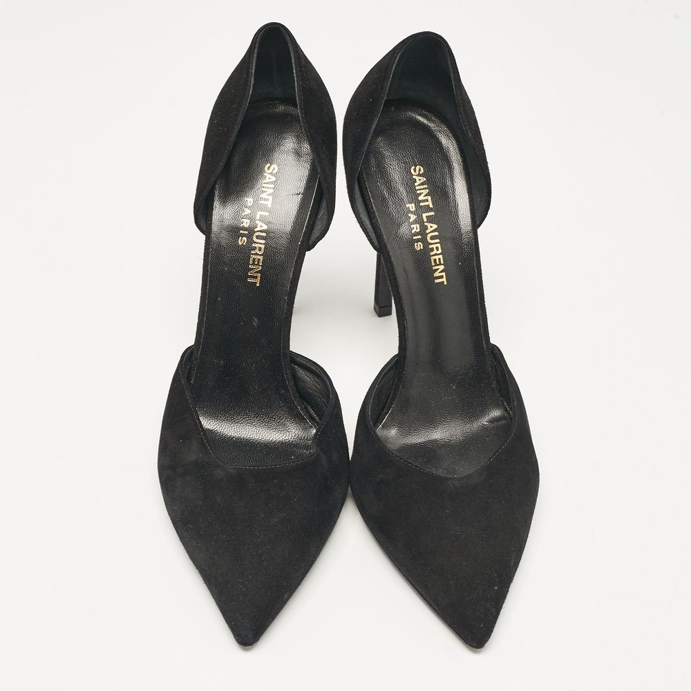 Make a chic style statement with these designer pumps. They showcase sturdy heels and durable soles, perfect for your fashionable outingsCertified by The Luxury Closet - This item has gone through a detailed authentication process overseen by our experts. We offer a lifetime guarantee of authenticity on all our items. Import duties, taxes and charges are not included in the item price. These charges are the buyers responsibility. Please check with your country’s customs office to determine what these additional cost will be prior to buying. Our eBay Store About Us Contact Us Add to Favorite Sellers Saint Laurent Black Suede D'orsay Pumps Size 38.5 $151.8 Make a chic style statement with these designer pumps. They showcase sturdy heels and durable soles, perfect for your fashionable outings Product Details Brand Color Black Dimensions Material Suede Size 38.5 Outsole Width Outsole Length Heel Height Includes Original Dustbag Certified by The Luxury Closet This item has gone through a detailed authentication process overseen by our experts. We offer a lifetime guarantee of authenticity on all our items. How We Check The in-house team of experts at The Luxury Closet is highly trained to verify the authenticity and the condition of the luxury products. They ensure that only 100% authentic items are put on sale.The evaluation process is unique with its own mix of assessment criteria and differs according to the category. Each item is evaluated based on the following combination of hallmarks, hardware, stitching, symmetry, material, craftsmanship, stamping, codes, hologram stickers, and packaging. Our authenticators also check if the items have been modified or amended (e.g., aftermarket diamonds, replaced batteries, repaired bags, etc.) International Buyers Import duties, taxes and charges are not included in the item price. These charges are the buyers responsibility. Please check with your country’s customs office to determine what these additional cost will be prior to buying.