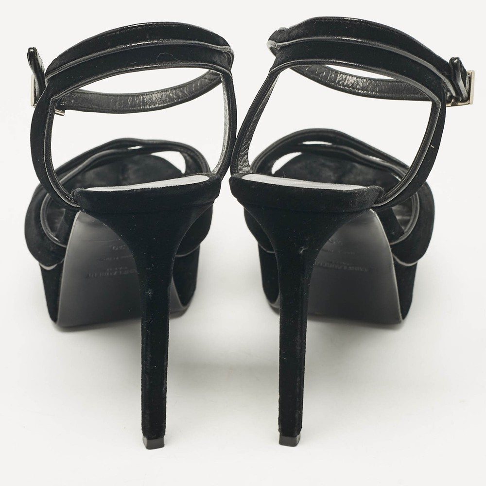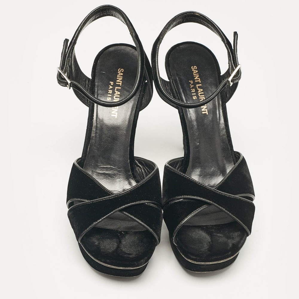 These sandals will offer you both luxury and comfort. Made from quality materials, they come in a versatile shade and are equipped with comfortable insoles.Certified by The Luxury Closet - This item has gone through a detailed authentication process overseen by our experts. We offer a lifetime guarantee of authenticity on all our items. Import duties, taxes and charges are not included in the item price. These charges are the buyers responsibility. Please check with your country’s customs office to determine what these additional cost will be prior to buying. Our eBay Store About Us Contact Us Add to Favorite Sellers Saint Laurent Black Velvet Bianca Ankle Strap Sandals Size 39 $174.9 These sandals will offer you both luxury and comfort. Made from quality materials, they come in a versatile shade and are equipped with comfortable insoles. Product Details Brand Color Black Dimensions Material Velvet Size 39 Outsole Width 8 cm Outsole Length 20 cm Heel Height 11 cm Includes Original Dustbag Certified by The Luxury Closet This item has gone through a detailed authentication process overseen by our experts. We offer a lifetime guarantee of authenticity on all our items. How We Check The in-house team of experts at The Luxury Closet is highly trained to verify the authenticity and the condition of the luxury products. They ensure that only 100% authentic items are put on sale.The evaluation process is unique with its own mix of assessment criteria and differs according to the category. Each item is evaluated based on the following combination of hallmarks, hardware, stitching, symmetry, material, craftsmanship, stamping, codes, hologram stickers, and packaging. Our authenticators also check if the items have been modified or amended (e.g., aftermarket diamonds, replaced batteries, repaired bags, etc.) International Buyers Import duties, taxes and charges are not included in the item price. These charges are the buyers responsibility. Please check with your country’s customs office to determine what these additional cost will be prior to buying.