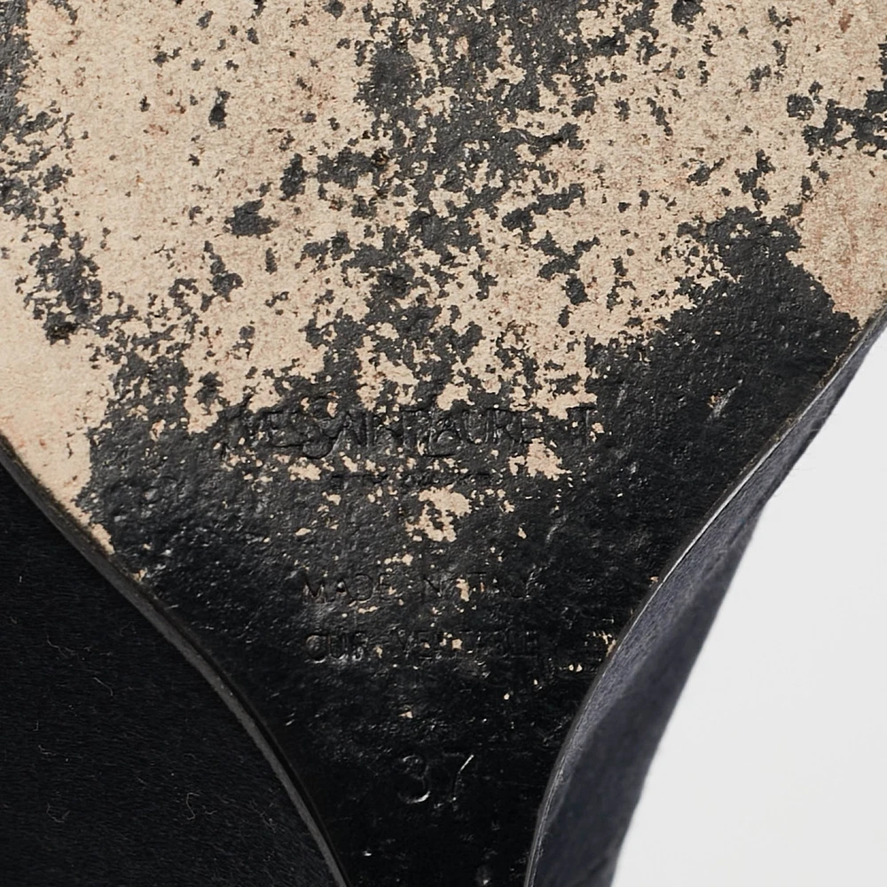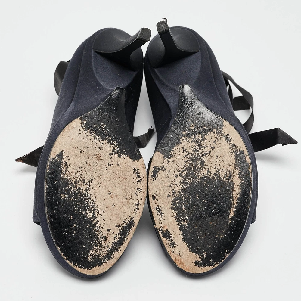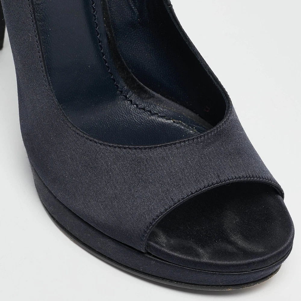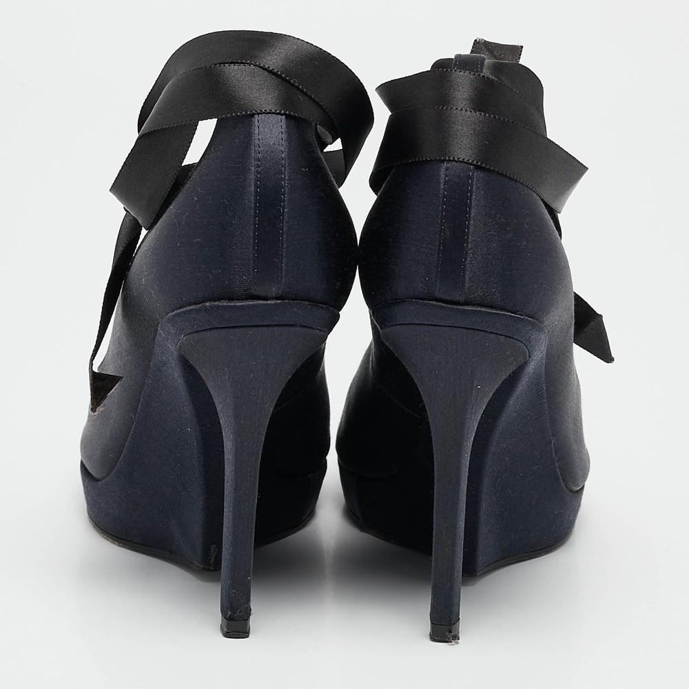 Curvaceous arches, a feminine appeal, and a well built structure define this set of Saint Laurent pumps. Coming with comfortable insoles and sleek heels, style them with your favorite outfits.Certified by The Luxury Closet - This item has gone through a detailed authentication process overseen by our experts. We offer a lifetime guarantee of authenticity on all our items. Import duties, taxes and charges are not included in the item price. These charges are the buyers responsibility. Please check with your country’s customs office to determine what these additional cost will be prior to buying. Our eBay Store About Us Contact Us Add to Favorite Sellers Saint Laurent Navy Blue Satin Open Toe Ankle Wrap Platform Pumps Size 37 $201.3 Curvaceous arches, a feminine appeal, and a well built structure define this set of Saint Laurent pumps. Coming with comfortable insoles and sleek heels, style them with your favorite outfits. Product Details Brand Color Navy Blue Dimensions Material Satin Size 37 Outsole Width 7 cm Outsole Length 23 cm Heel Height 11 cm Includes The Luxury Closet Packaging Certified by The Luxury Closet This item has gone through a detailed authentication process overseen by our experts. We offer a lifetime guarantee of authenticity on all our items. How We Check The in-house team of experts at The Luxury Closet is highly trained to verify the authenticity and the condition of the luxury products. They ensure that only 100% authentic items are put on sale.The evaluation process is unique with its own mix of assessment criteria and differs according to the category. Each item is evaluated based on the following combination of hallmarks, hardware, stitching, symmetry, material, craftsmanship, stamping, codes, hologram stickers, and packaging. Our authenticators also check if the items have been modified or amended (e.g., aftermarket diamonds, replaced batteries, repaired bags, etc.) International Buyers Import duties, taxes and charges are not included in the item price. These charges are the buyers responsibility. Please check with your country’s customs office to determine what these additional cost will be prior to buying.