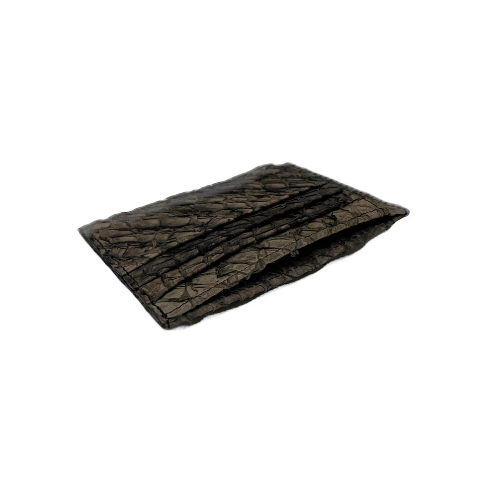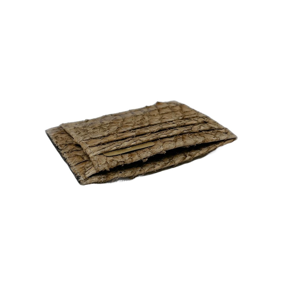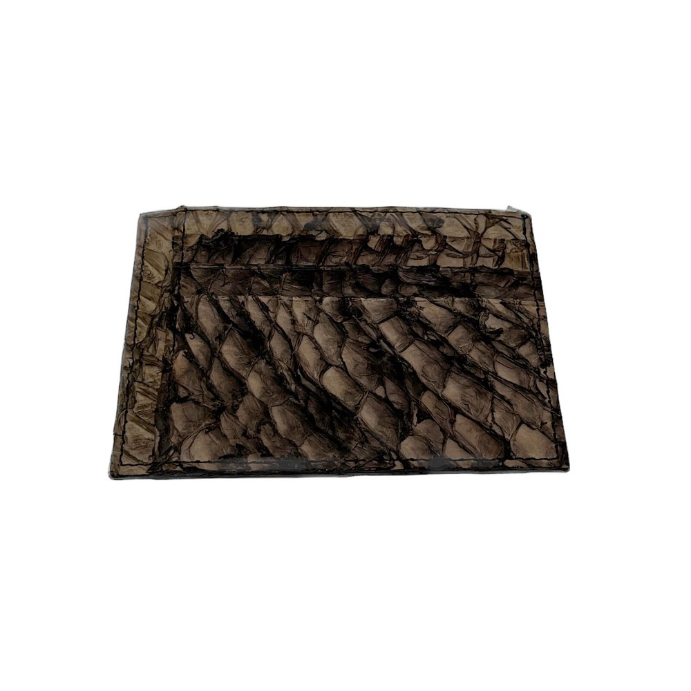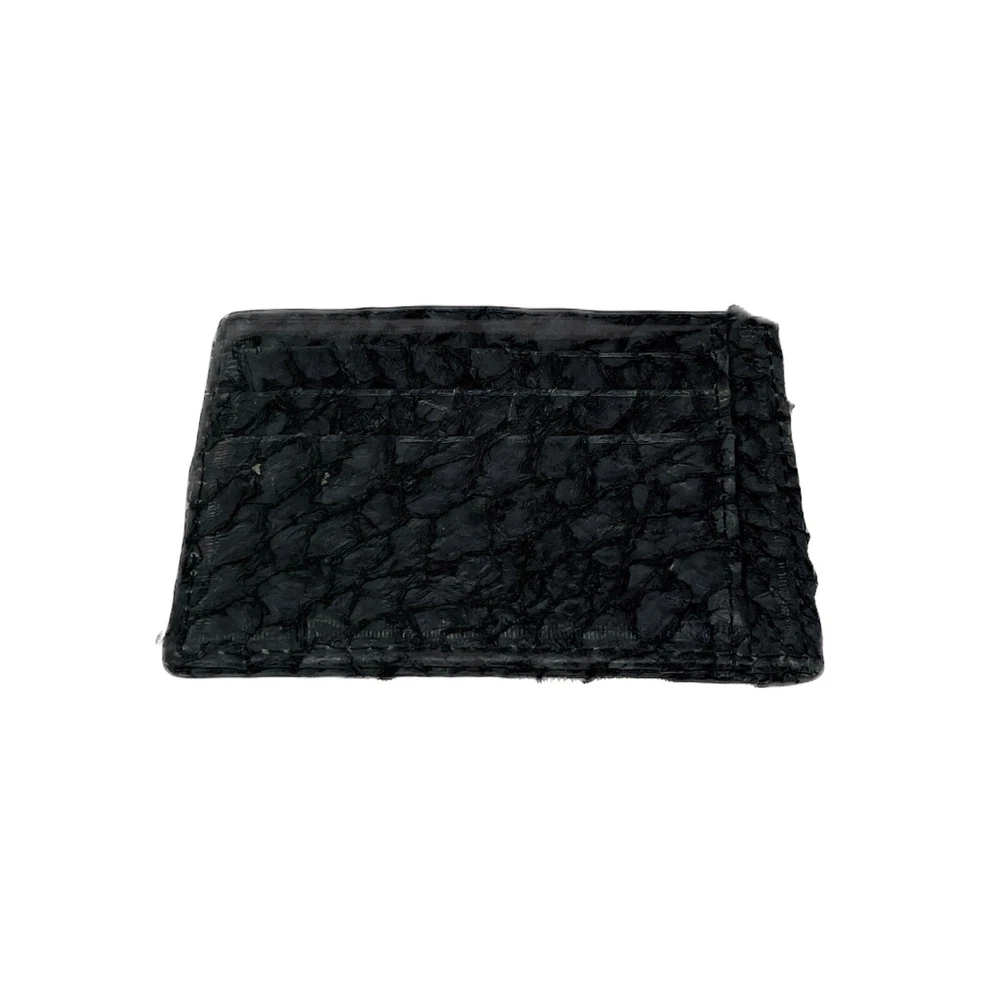 These are beautifully handcrafted credit card wallets that are made out of Salmon fish skin leather. They have six credit card slots, two side pockets, and a center top pocket. They measure 4.25" x 3". These are fair trade items from Peru.