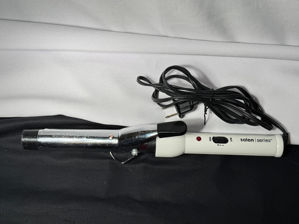 Power:18WModel:CD13TSBCRType:Curling IronMaximum Temperature:400 °FFeatures:Adjustable Heat SettingsMPN:N/ABrand:Salon SeriesPower Source:ElectricBarrel Size:1 inHeating Plate Material:CeramicSeller Notes:“used condition has some mild scratches but is in working order”