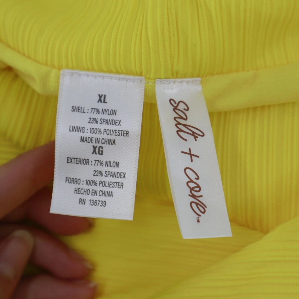 Salt + Cove Juniors Beachwear Summer Swim Bottom Separates Womens XL Yellow Pool If you've ever wanted to feel like a highlighter at the beach, these yellow bikini bottoms are your chance! Perfect for those who love standing out. • High-waisted design • Ribbed texture • Stretchy spandex blend • Lined for comfort Features: swim, separates, bottoms, bathing suit, bikini, travel, resort, beach, pool Size: Womens XL Condition: New With Tags