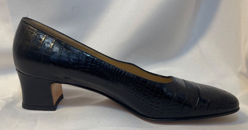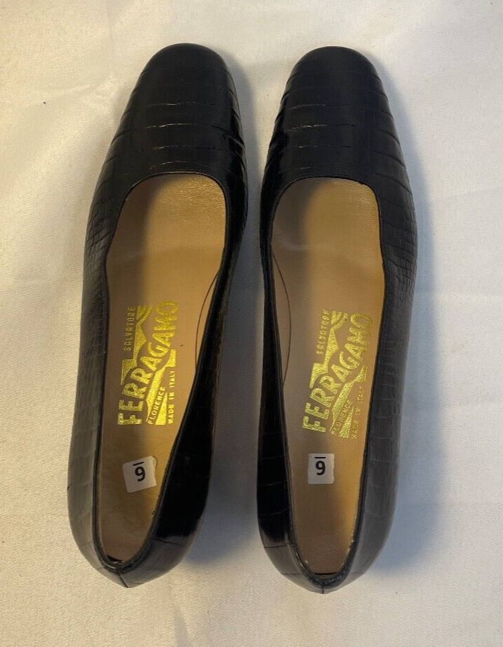 Salvatore Ferragamo Black Leather Croc Print Low Heel Brand: Salvatore Ferragamo Overall Condition: Excellent. See pictures for details. Materials: Leather Shipped with USPS Priority, Flat Rate or, when possible, First Class Mail. Elevate your style with these Salvatore Ferragamo Black Leather Croc Print Low Heels in size 6. Crafted from high-quality black leather with a luxurious croc print, these heels offer a sophisticated yet modern look. The low heel provides comfort for all-day wear, making them perfect for both work and casual outings. Pre-owned and in excellent condition, they are clean and ready to add a touch of elegance to any outfit. Don’t miss the opportunity to own this timeless pair from a renowned designer! Details for Shopper Size: 6 Shoes Width: 3 inches Heel Height: 2 inches Heel Type: Block Toe Style: Square Toe Payment Policies We accept payment through PayPal, credit card, and debit card. Please note that the item may be relisted if payment is not received within the 10 day period. Shipping Policies Delivery estimates will be displayed at checkout. In-store pickup is also available if you would like to visit us in store. We ship to Continental United States only. Terms of Sale Each item we sell is unique. There are no exchanges for the same item available. All items are carefully inspected by My Sister’s Closet of Monroe County’s quality control team prior to shipping. Please carefully review item details. If you have questions, please message us regarding the item before purchasing. Note: Due to the different monitor and light effects, the actual color of the item shown might be slightly different from the color in pictures. Return Policy We strive to describe and measure our items accurately. If your order is not what you expected, we accept returns under the following conditions: The item was not as described as listed The wrong item was shipped. The item does not fit. If the wrong item was shipped, we will attempt to replace it with the item originally ordered. Please note - items not returned in the exact same condition, with tags attached, may be subject to a partial refund to account for loss of the item’s value. Please refer to eBay Return policy for more details. You are covered by the eBay Money Back Guarantee if you receive an item that is not described as listed. Return Requirements: The buyer must return the item within 30 days of receipt. Buyer is responsible for return shipping charges. The item(s) must be returned in the original condition, unworn, with tags attached. Thank you for shopping with us! A little bit more about us… My Sister’s Closet is a nonprofit serving women in poverty since 1998. Our mission is to help women move closer to economic self-sufficiency by providing essential career development tools. This includes job training, mentoring, advocacy services, and professional attire for job interviews to help them find employment. We have helped over 2500 women thus far. Most clients we serve have been dealing with homelessness, domestic violence, illness, divorce, job loss, economic recovery and/or lack basic education. Visit Our eBay Store