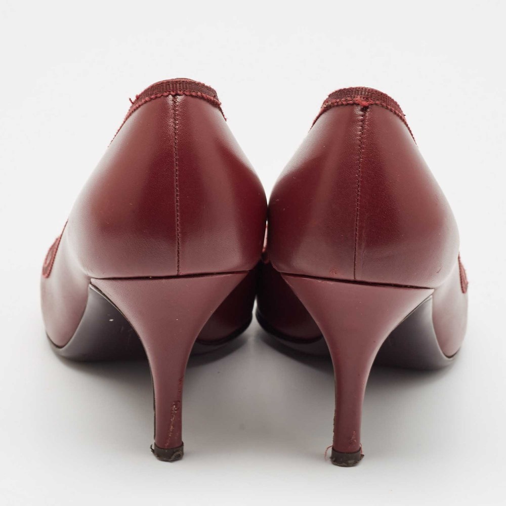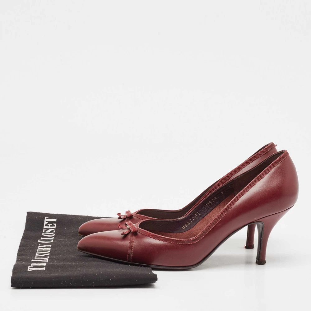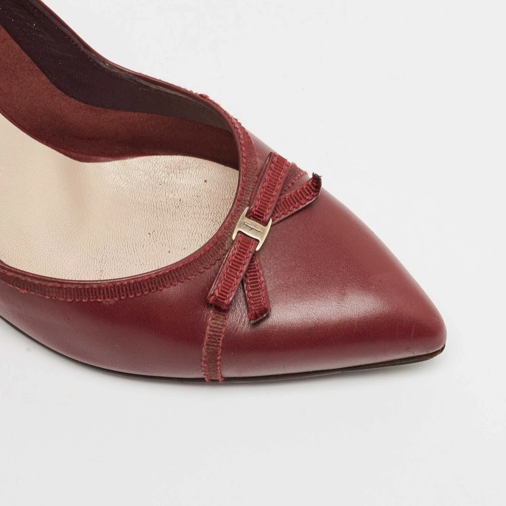 Exuding timeless charm, these Salvatore Ferragamo pumps are crafted from rich burgundy leather. The signature bow detail at the vamps add a feminine and refined touch. Completed with platforms and 10cm heels, they provide a perfect blend of style and comfort for everyday elegance.Certified by The Luxury Closet - This item has gone through a detailed authentication process overseen by our experts. We offer a lifetime guarantee of authenticity on all our items. Import duties, taxes and charges are not included in the item price. These charges are the buyers responsibility. Please check with your country’s customs office to determine what these additional cost will be prior to buying. Our eBay Store About Us Contact Us Add to Favorite Sellers Salvatore Ferragamo Burgundy Leather Bow Pumps Size 38.5 $172.7 Exuding timeless charm, these Salvatore Ferragamo pumps are crafted from rich burgundy leather. The signature bow detail at the vamps add a feminine and refined touch. Completed with platforms and 10cm heels, they provide a perfect blend of style and comfort for everyday elegance. Product Details Brand Color Burgundy Dimensions Material Leather Size 38.5 Outsole Width 7 cm Outsole Length 22.5 cm Heel Height 10 cm Includes The Luxury Closet Packaging Certified by The Luxury Closet This item has gone through a detailed authentication process overseen by our experts. We offer a lifetime guarantee of authenticity on all our items. How We Check The in-house team of experts at The Luxury Closet is highly trained to verify the authenticity and the condition of the luxury products. They ensure that only 100% authentic items are put on sale.The evaluation process is unique with its own mix of assessment criteria and differs according to the category. Each item is evaluated based on the following combination of hallmarks, hardware, stitching, symmetry, material, craftsmanship, stamping, codes, hologram stickers, and packaging. Our authenticators also check if the items have been modified or amended (e.g., aftermarket diamonds, replaced batteries, repaired bags, etc.) International Buyers Import duties, taxes and charges are not included in the item price. These charges are the buyers responsibility. Please check with your country’s customs office to determine what these additional cost will be prior to buying.