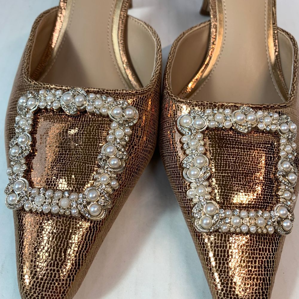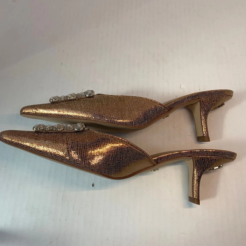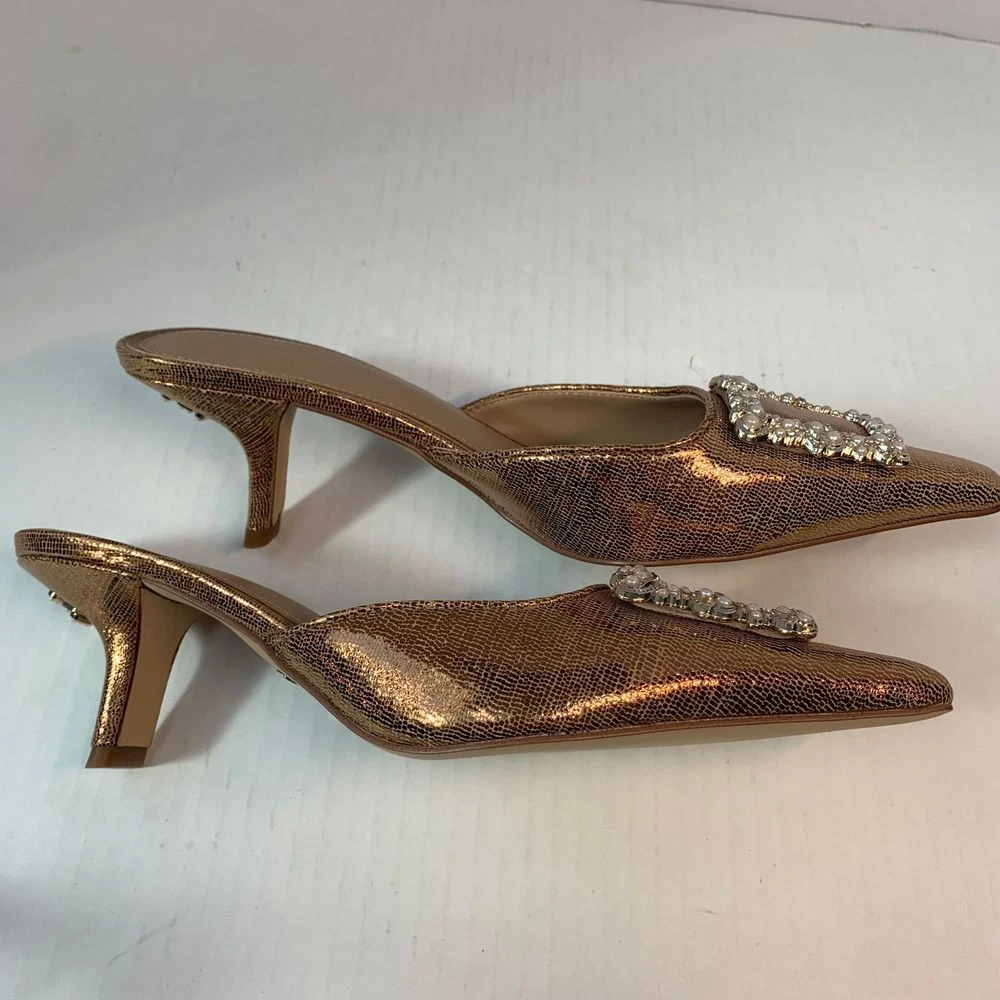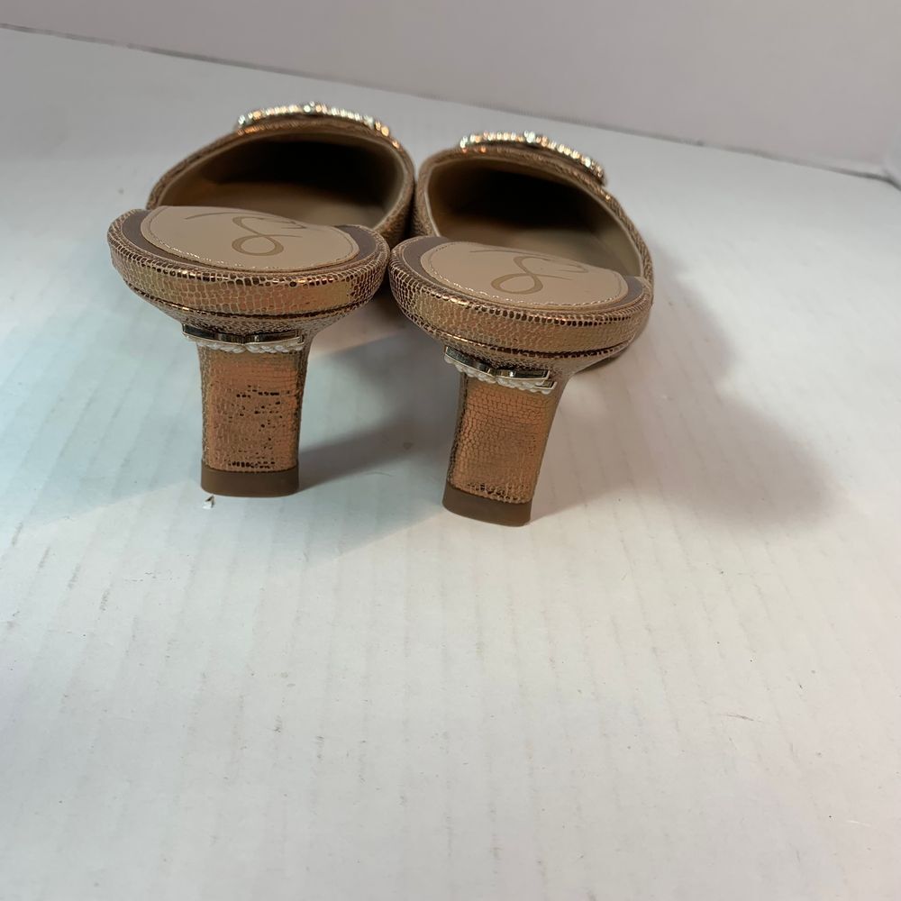 Sam Edelman Brit Luster Mules Kitten Heel in Deep Gold with Metallic Pearl Accent Size 9.5