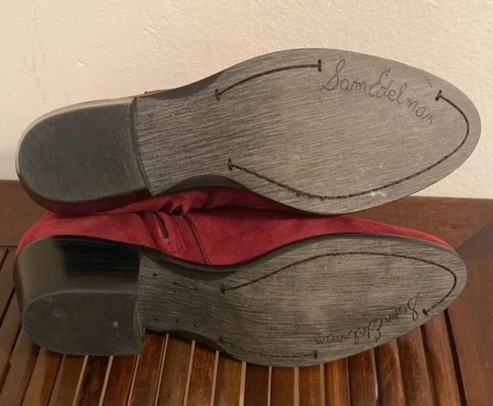 Sam Edelman Burgundy Suede Petty Booties Heel height 1 1/2” In good used condition