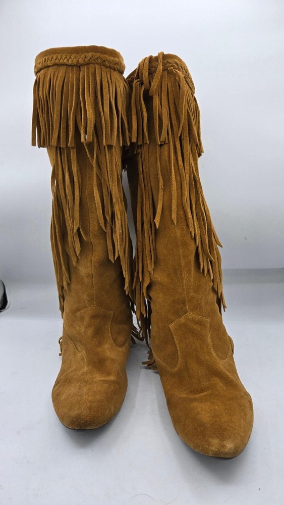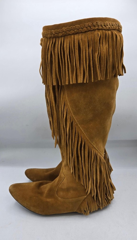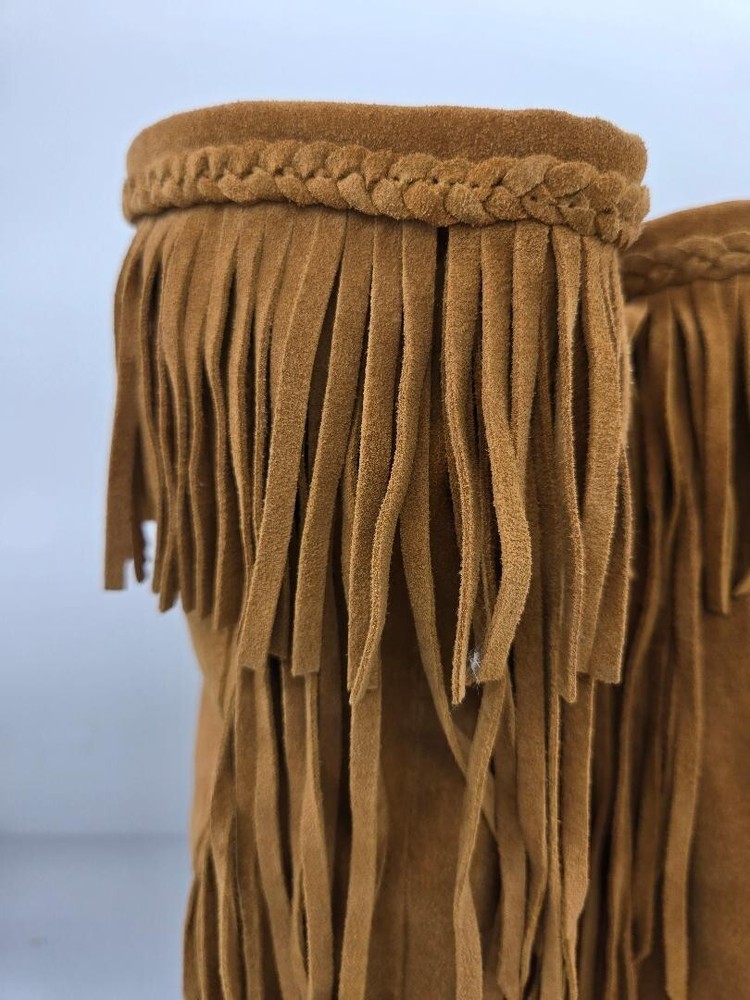 Sam Edelman Utah Moccasin Boots Camel Suede Western Fringe Size 6.5M