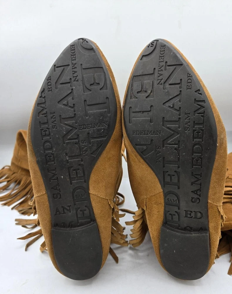 Theme:TribalStyle:WesternHeel Height:Flat (0 to 1/2 in.)US Shoe Size:6.5MUPC:Does not applyPattern:FringedCountry/Region of Manufacture:ChinaDepartment:WomenCharacter:BootsColor:Camel TanHeel Style:FlatAccents:Fringegtin13:Does not applyClosure:Pull OnBrand:Sam EdelmanMaterial:Suede LeatherUpper Material:SuedeSeller Notes:“Boots are in GOOD used condition”Occasion:All occasionType:Boot