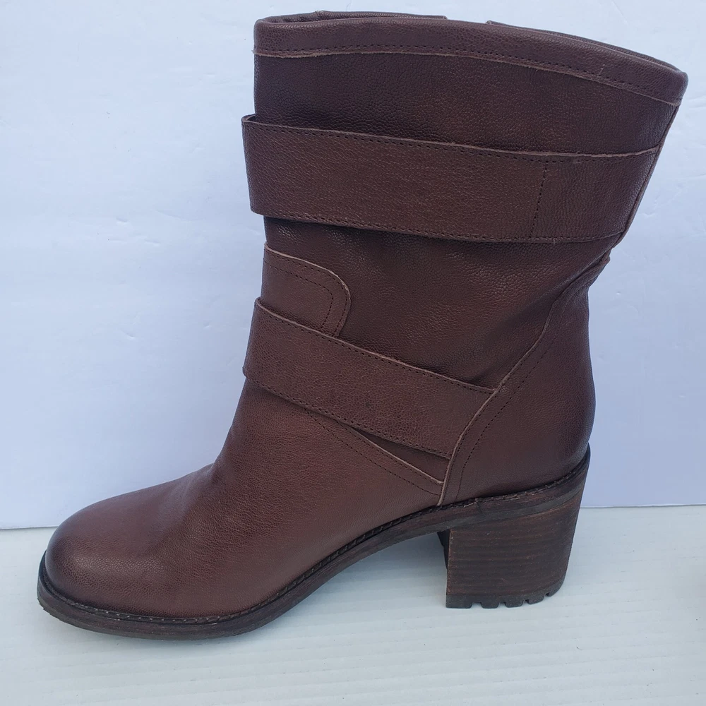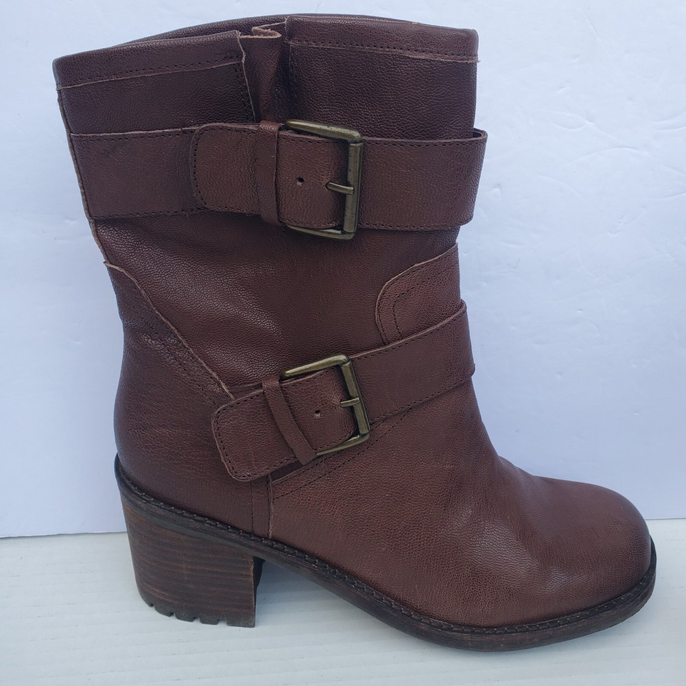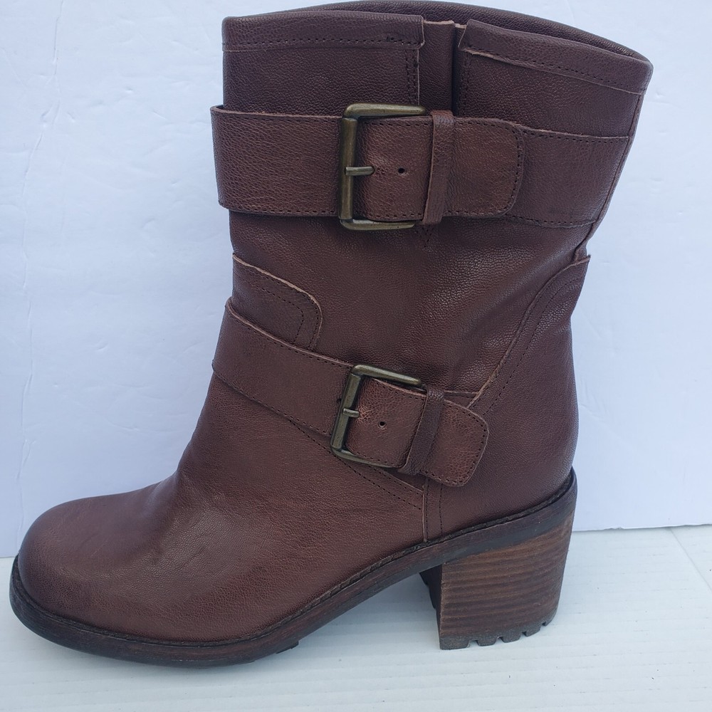 Sam Edelman Woman's Troy Brown Biker Moto Leather Block Heel Boots. Size 8.5M. Excellent Pre-owned condition. Boots show very little wear. Please see photos.